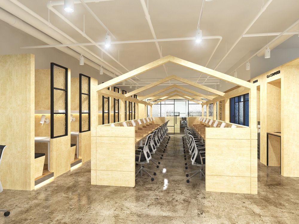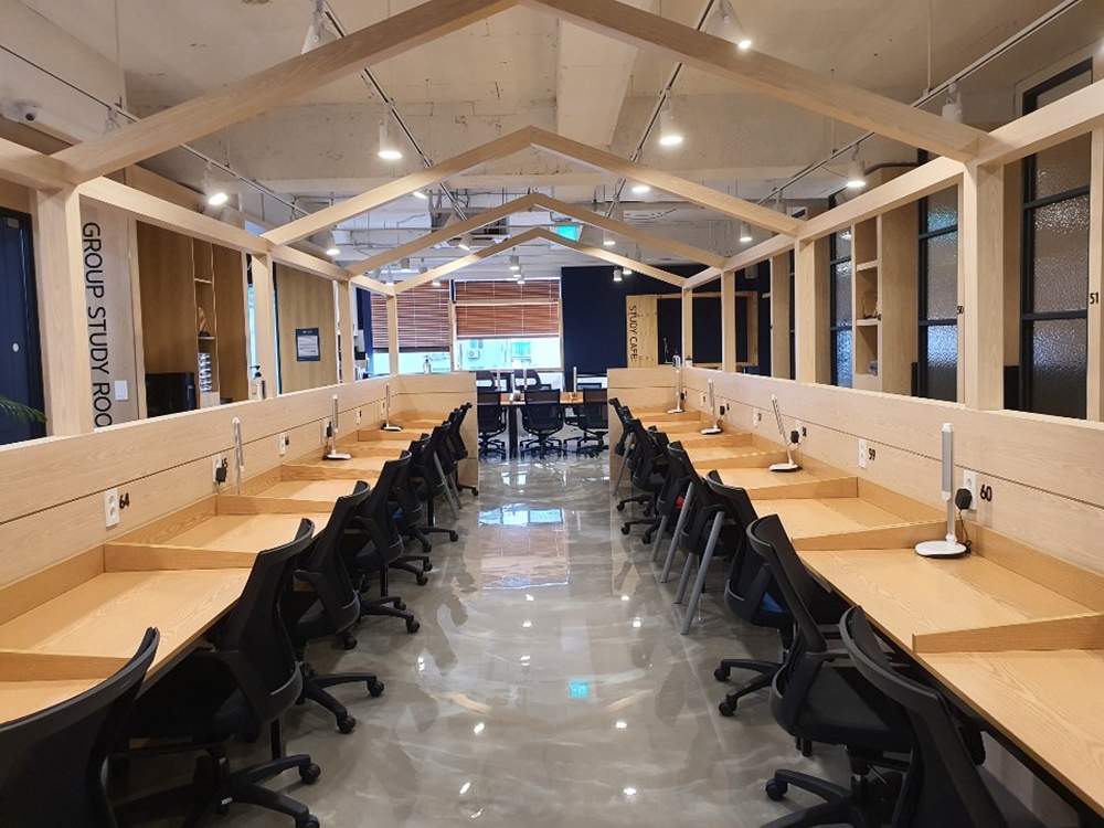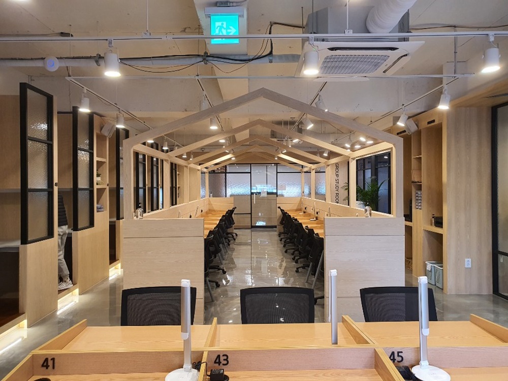 그래서 스터디카페인테리어 시 스터디룸은 오른 스페이스 형태로 디자인하여 개방감을 주는 것이 좋습니다.