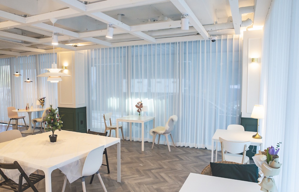 그리고 카페의 창문을 넓게 디자인해 자연광이 들어올 수 있도록 하는 것도 좋습니다.