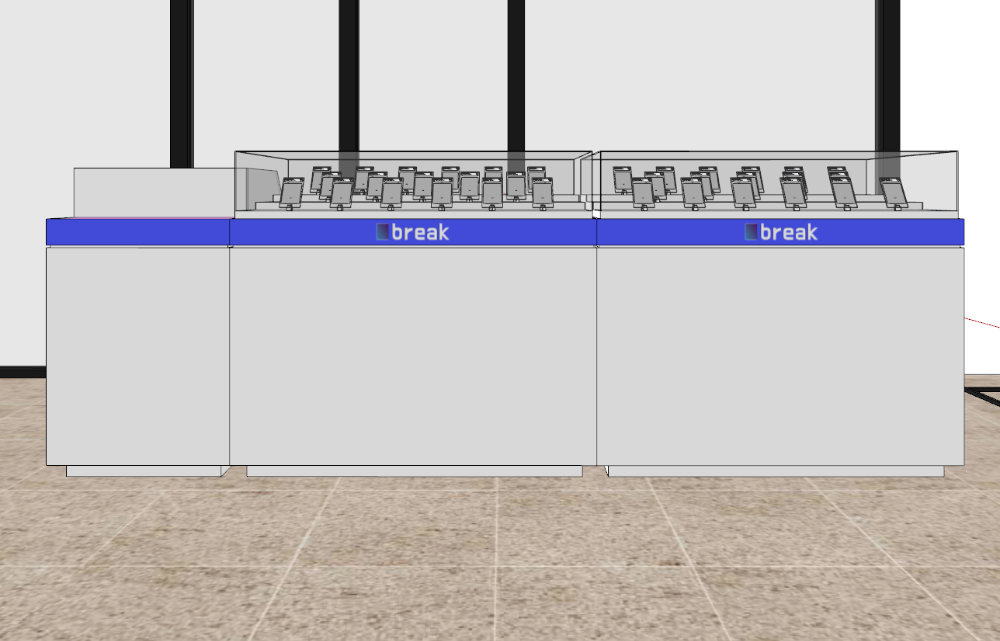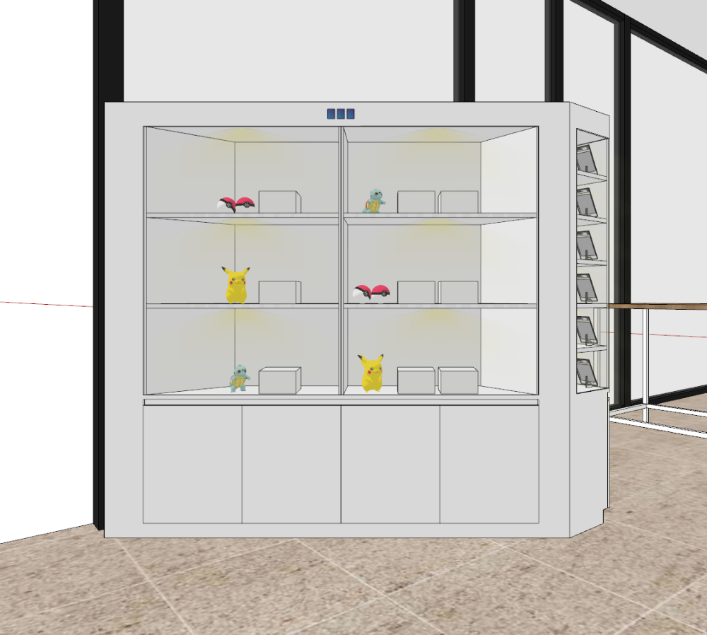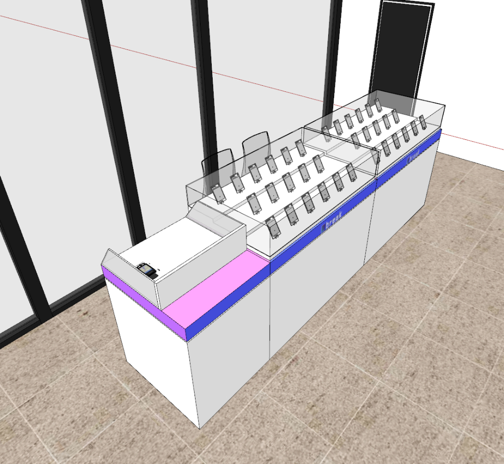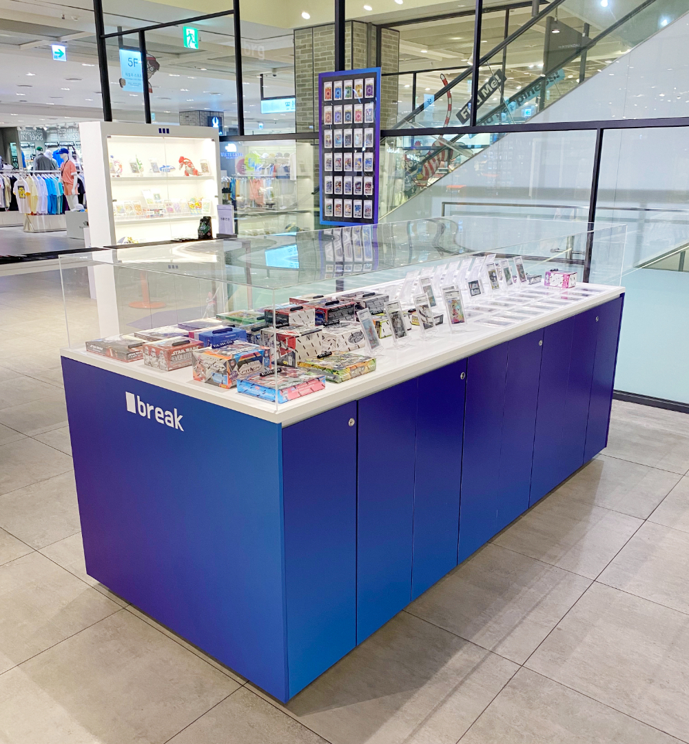 양쪽 사이드에 진열대를 비치하는 구성을 진행했습니다.