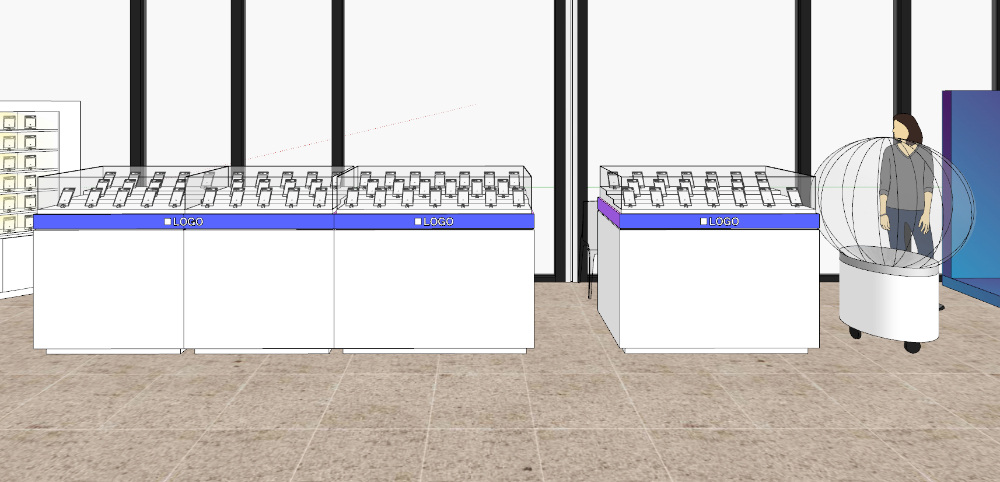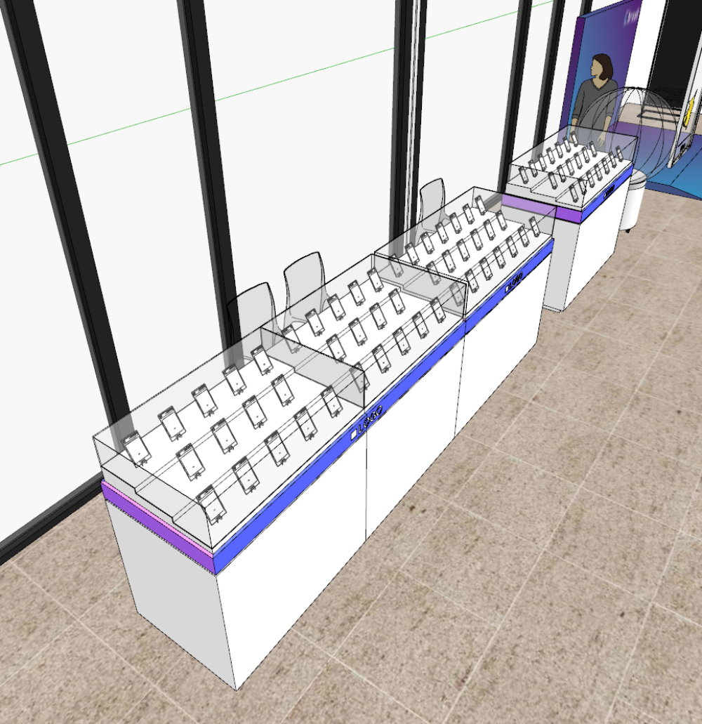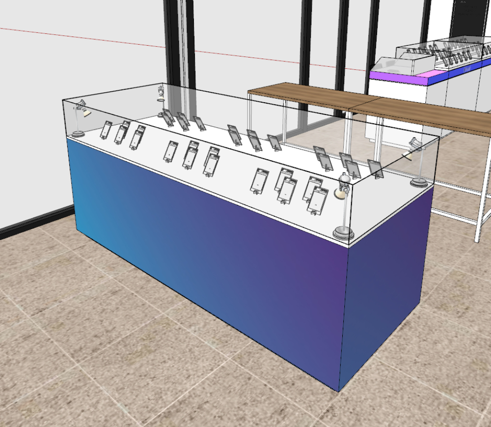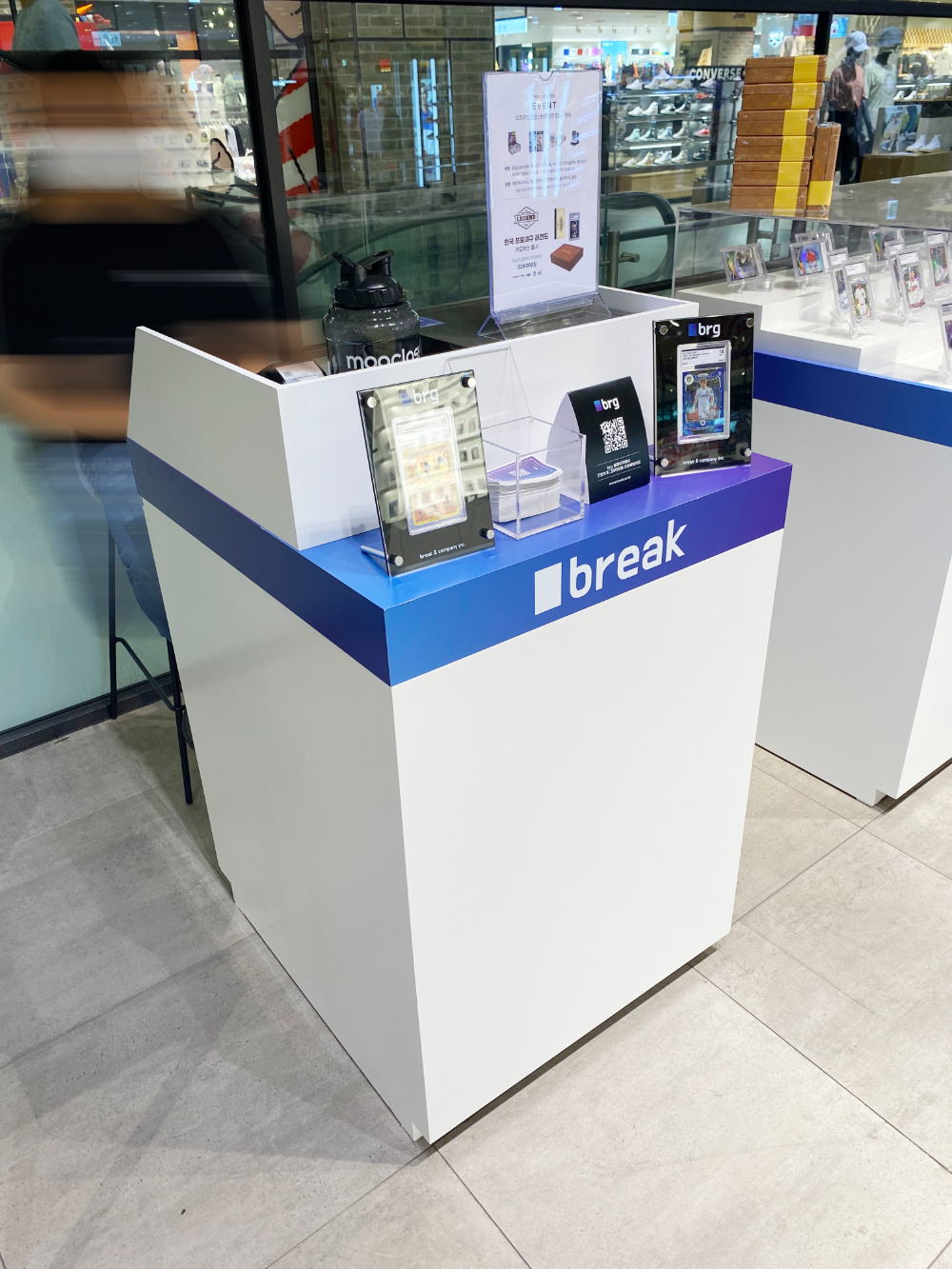 양쪽 사이드에 진열대를 비치하는 구성을 진행했습니다.