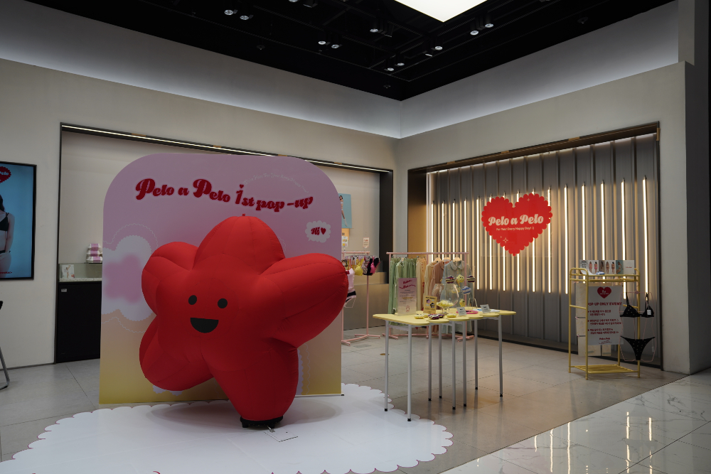 무엇보다 가시성이 중요한 백화점 아울렛 팝업스토어인테리어는 사람들의 이목을 끄는것에 집중했는데요. 탁 트여진 팝업스토어의 가운데에 브랜드의 마스코트를 배치하였습니다. 그리고 캐릭터와 어울리는 아트월을 디자인하여 함께 배치하였으며, 메인 컬러인 레드와 어울리는 핑크와 옐로우를 곳곳에 가미하였습니다.