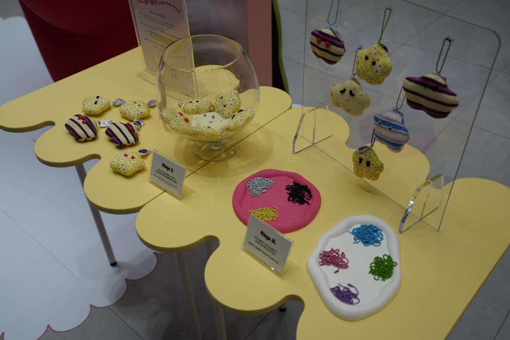 이번에는 중앙에서 보았을 때, 눈에 띄는 마스코트를 배치하고 곳곳에 포토존을 만드는 것에 집중하였습니다. 그리고 키치하면서도 너무 과하지 않도록 미니멀한 느낌을 주었고, 사전에 브랜드에 대한 공부를 하여 어울리는 곳으로 만들기 위한 노력을 하였는데요.