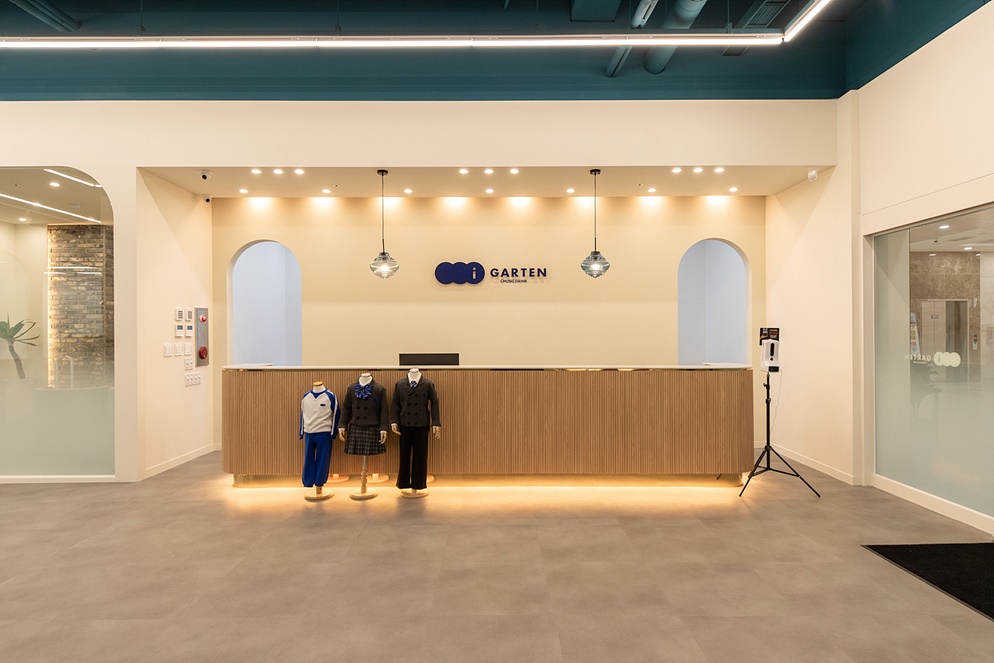 이는 인포메이션을 제외한 모든 벽면과 문에 적용돼 통일성을 이룹니다. 벽면을 따라 독립적인 강의실을 두면 수업을 하는데 방해되지 않고 집중할 수 있는데요,