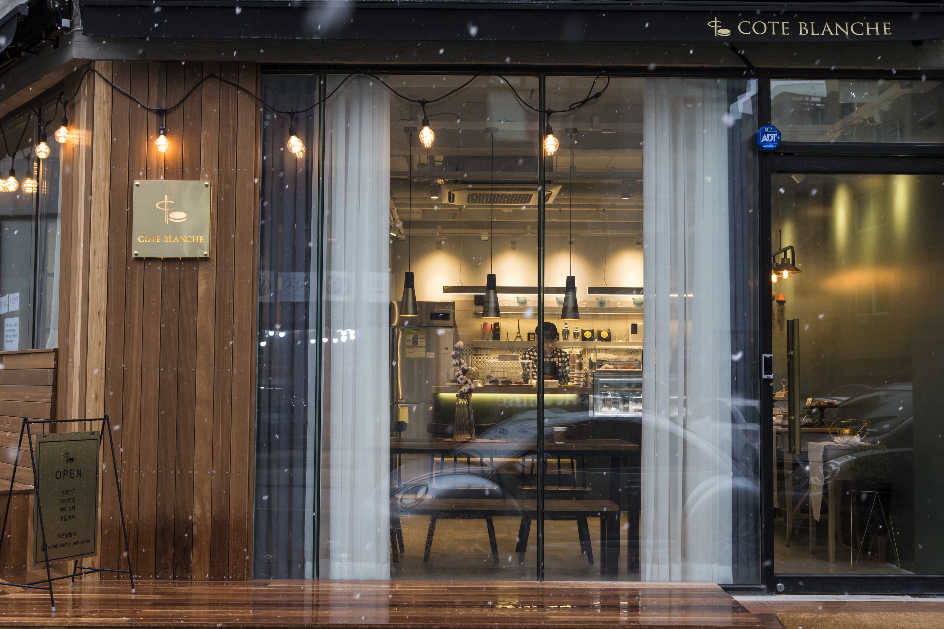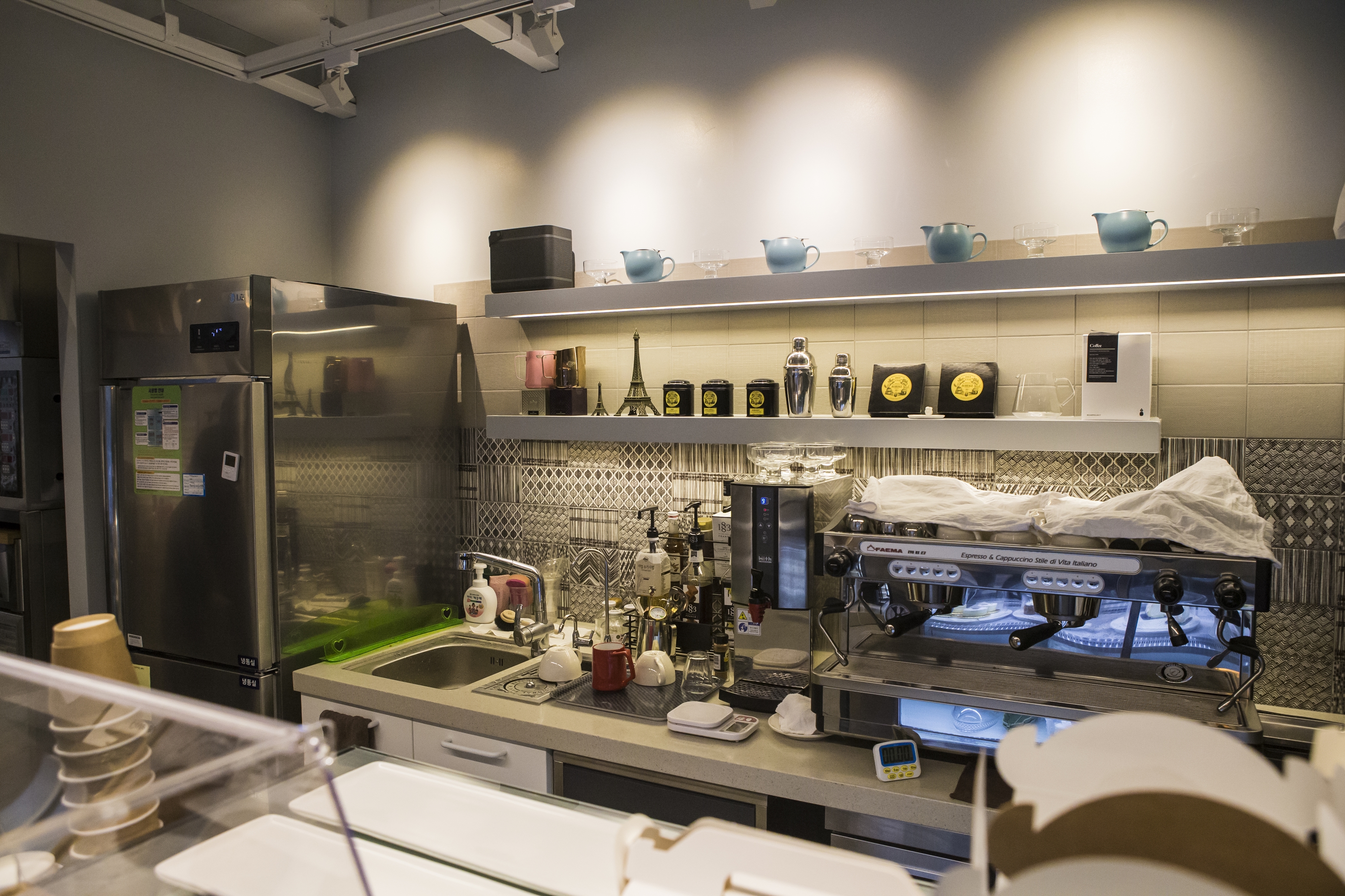 멀리서 카운터 테이블을 촬영해 보았습니다. 조명과 넘 잘 어울리죠
