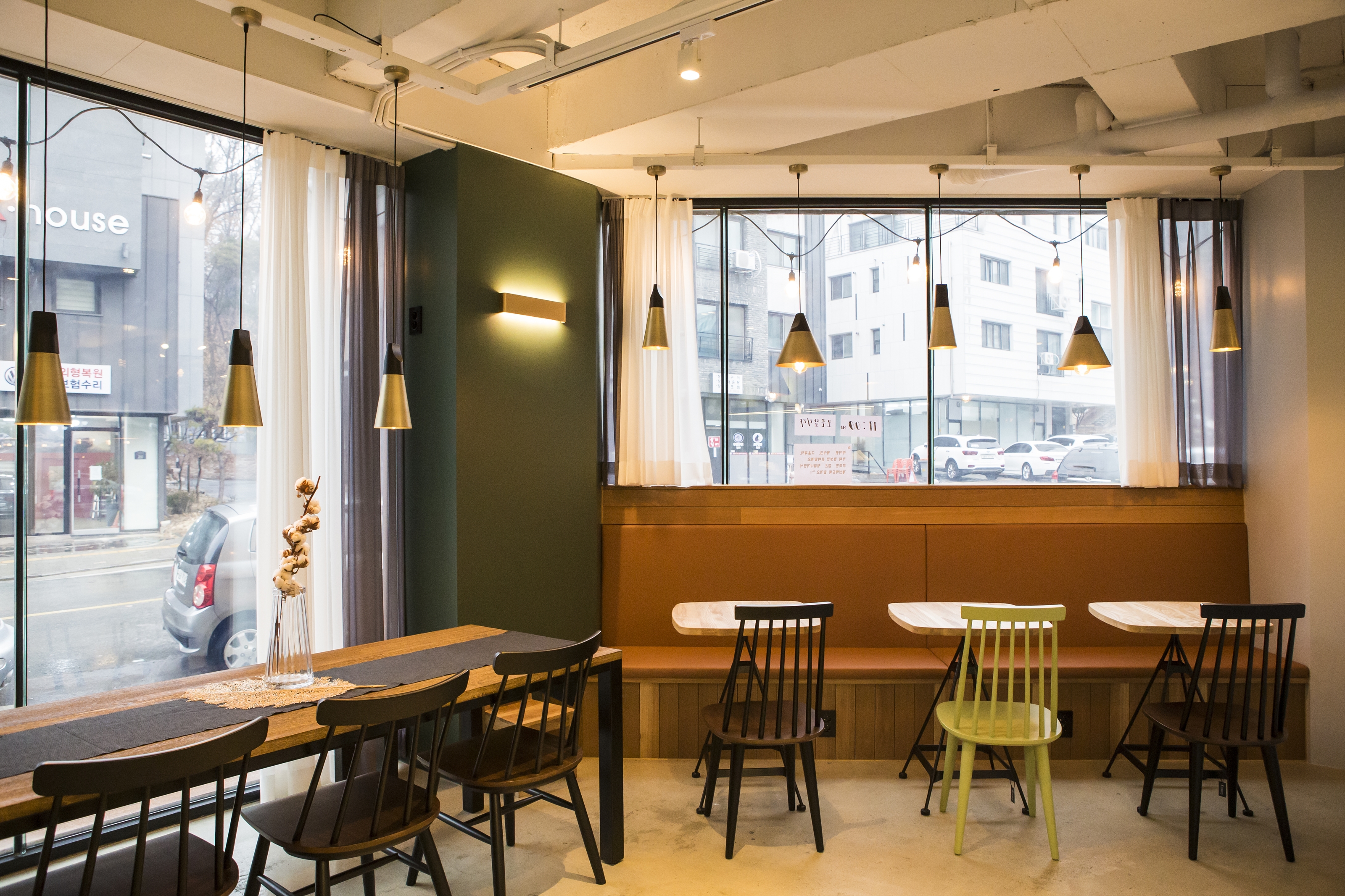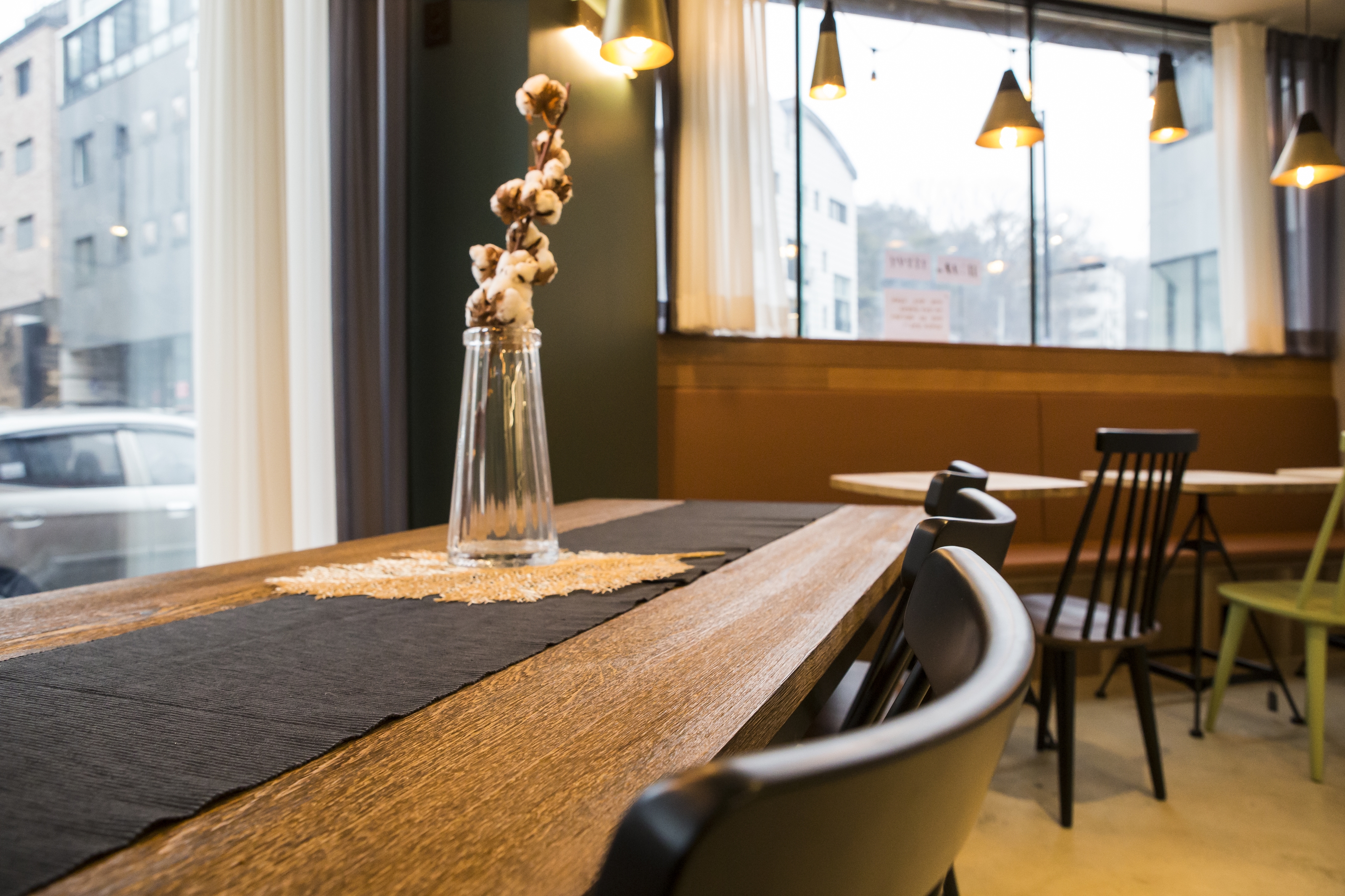 외부 뷰를 보면서 활용이 가능한 테이블 배치 입니다. 팬던트 조명으로 포인트를 주었구요