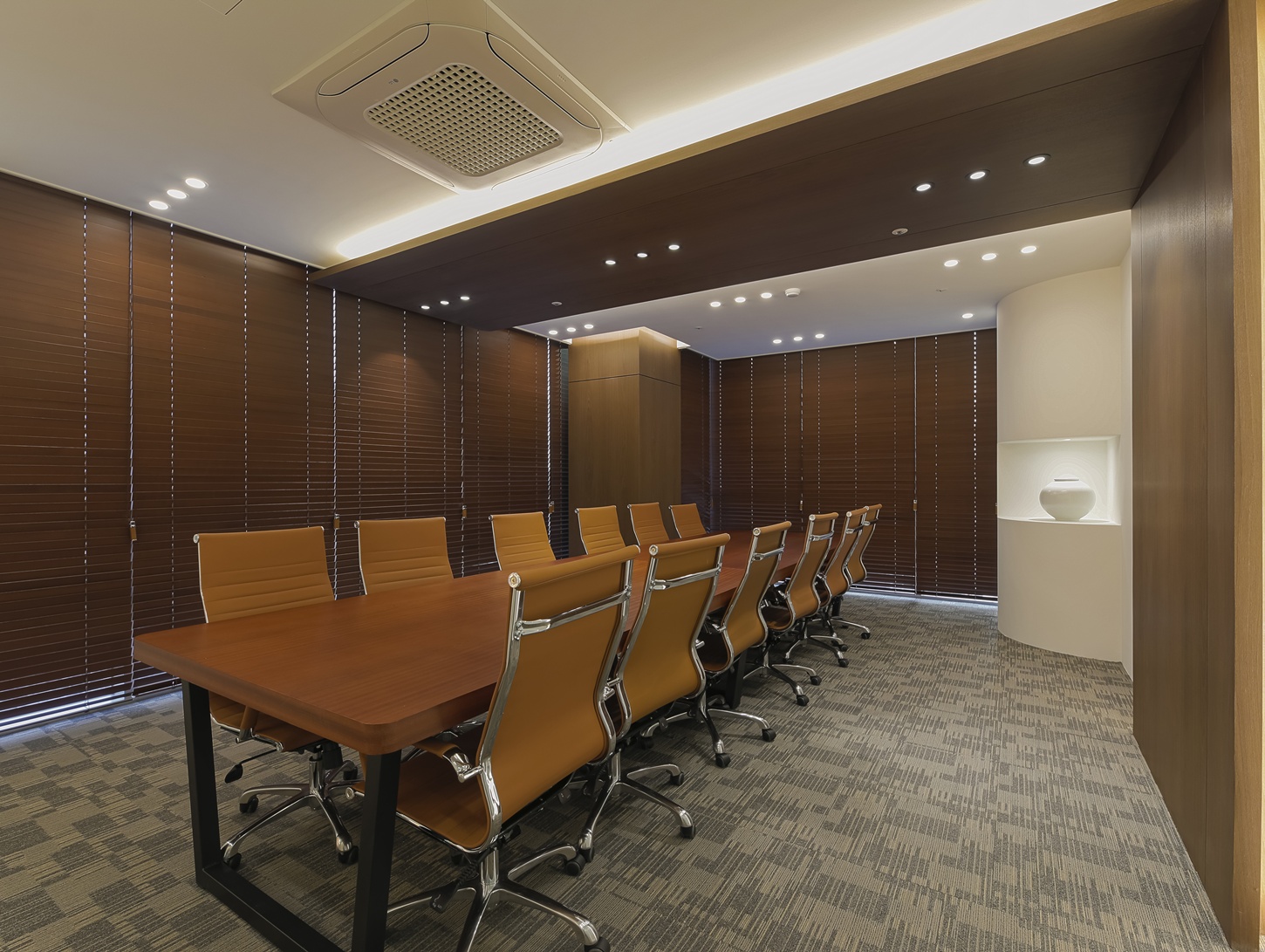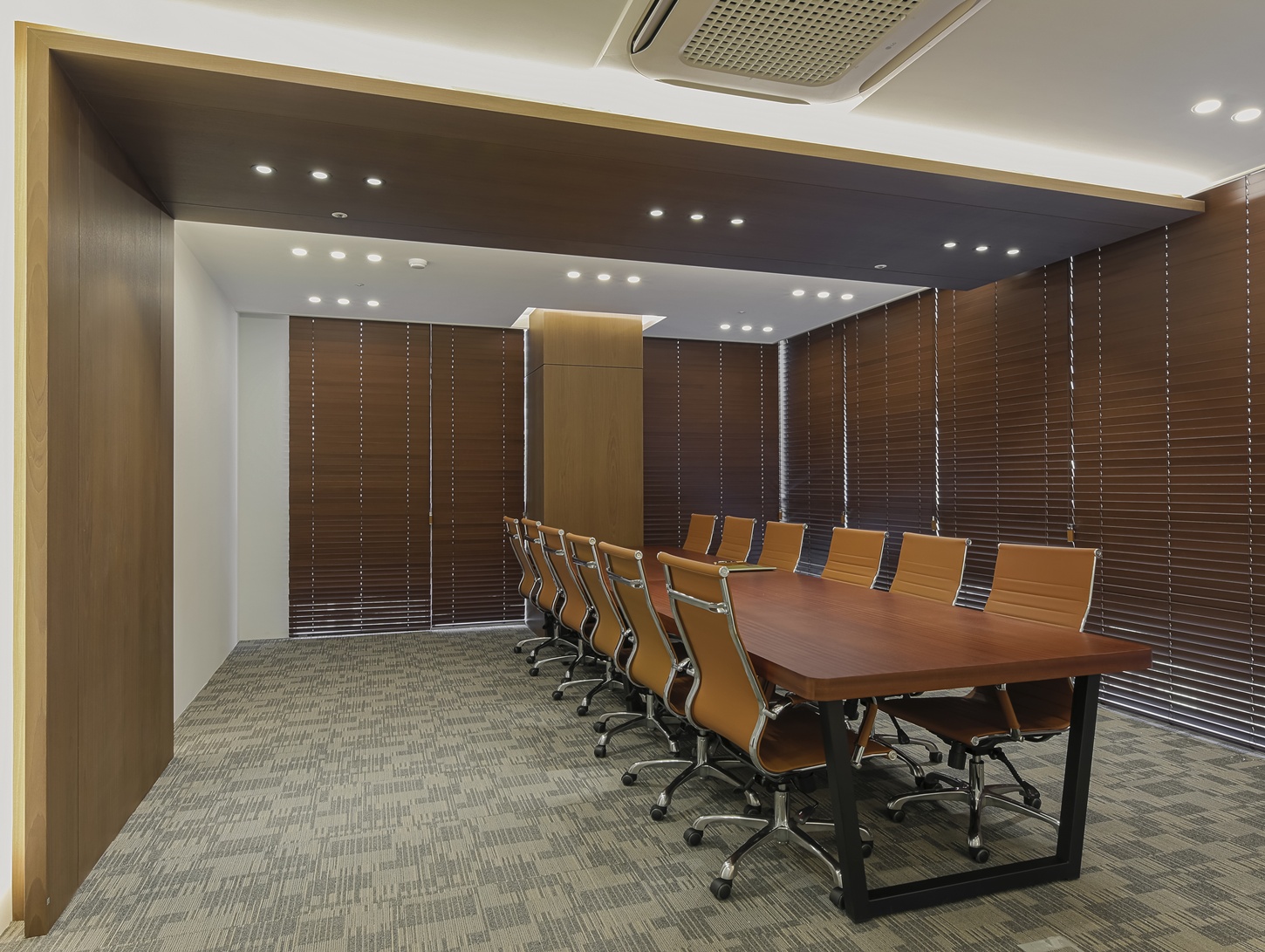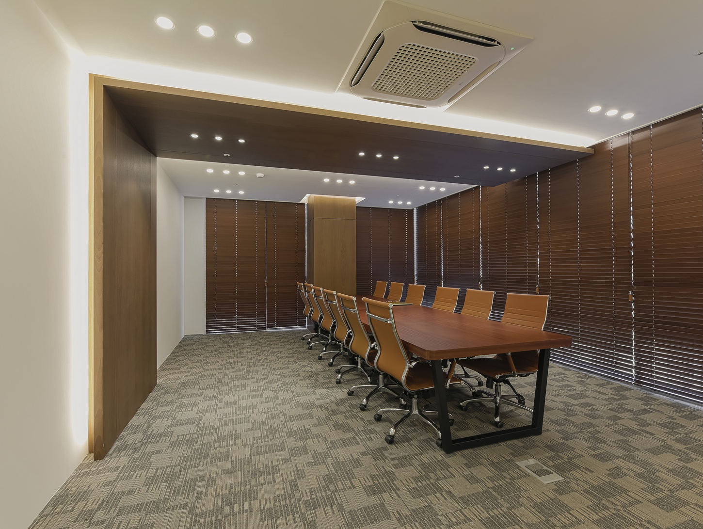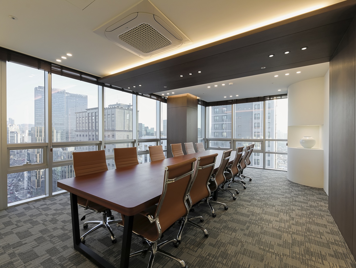회의실은 집중도를 높일 수 있는 구조로 설계하였으며 우드 가구 특유의 따뜻함이 더해져