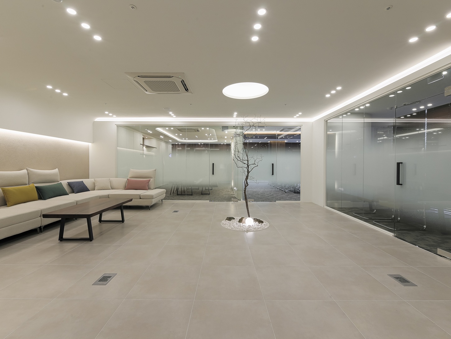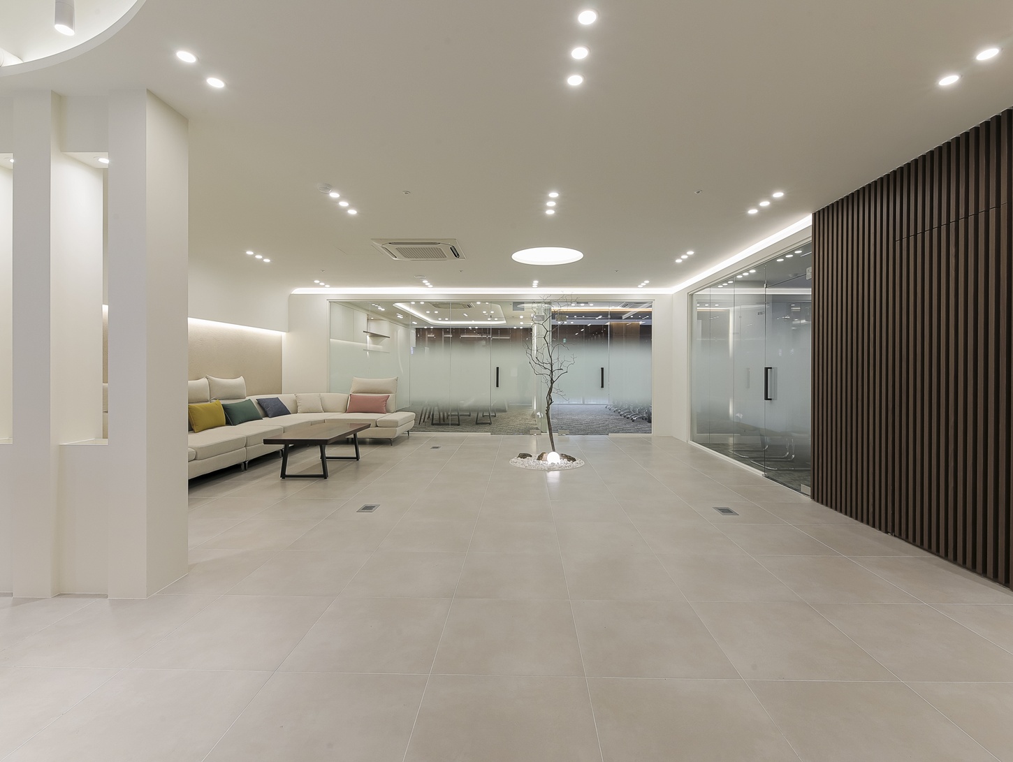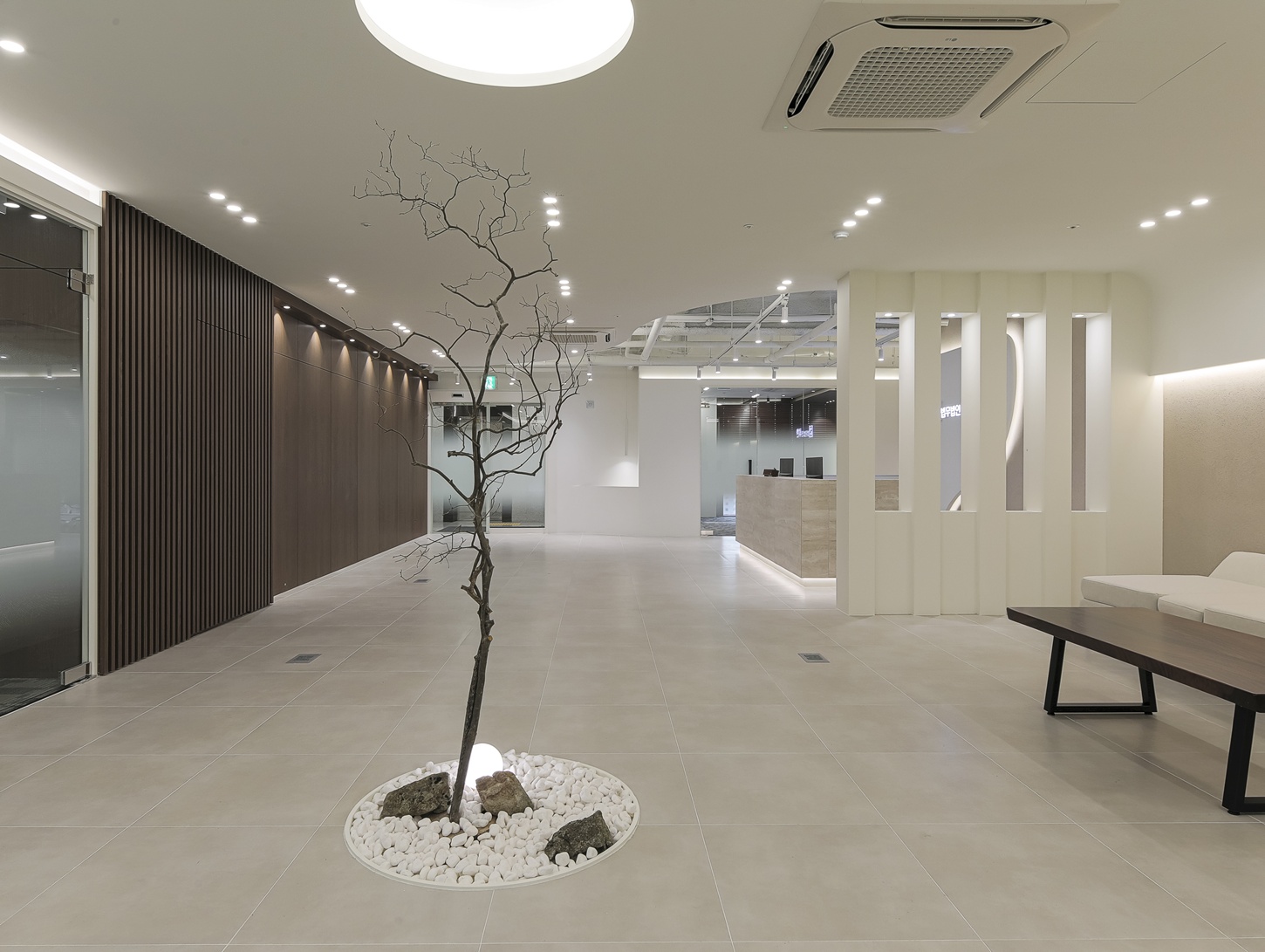 자연 요소가 더해진 대기공간은 공간 전체의 인상을 한층 부드럽게 만들어 줄 뿐만 아니라
