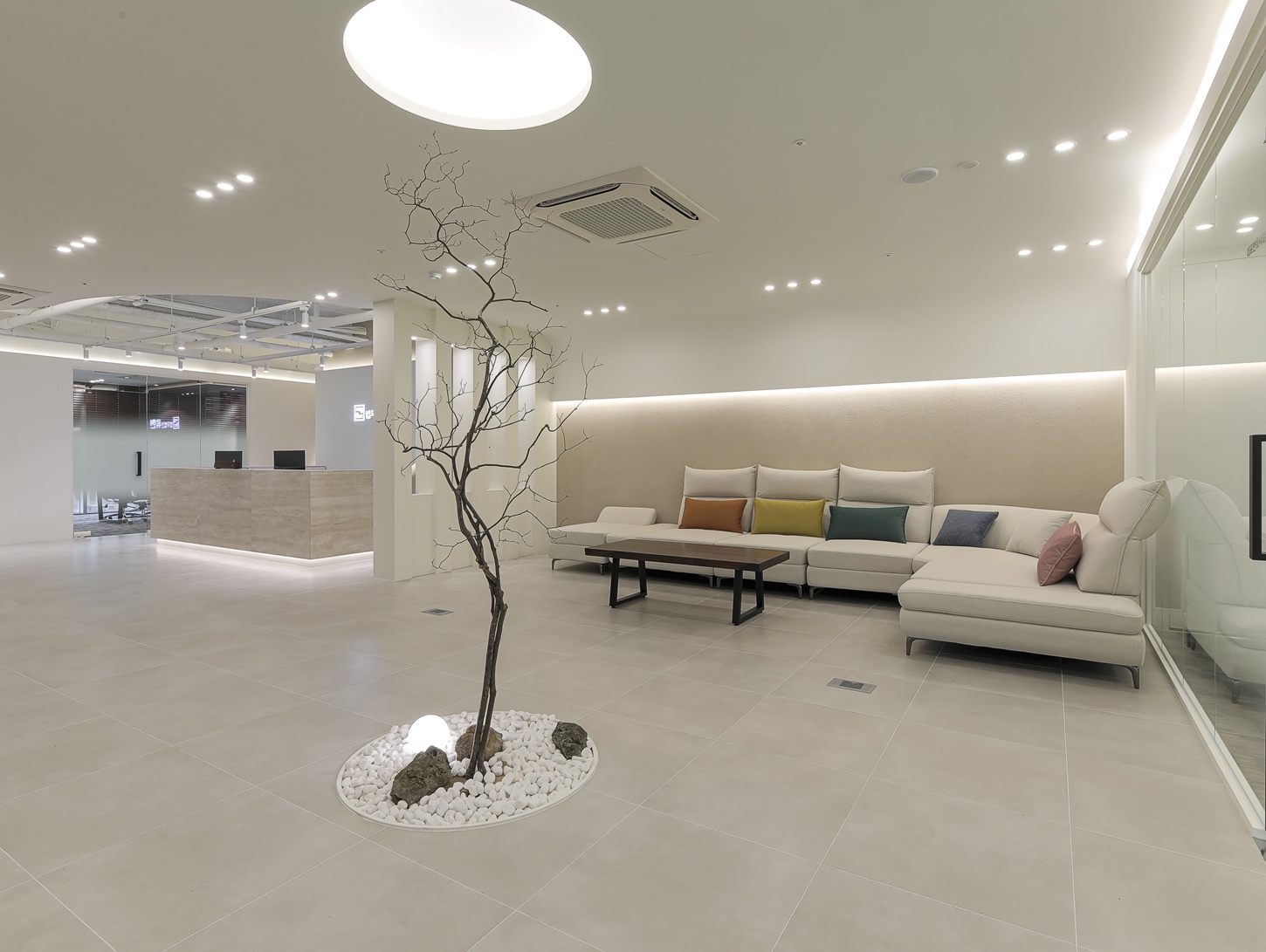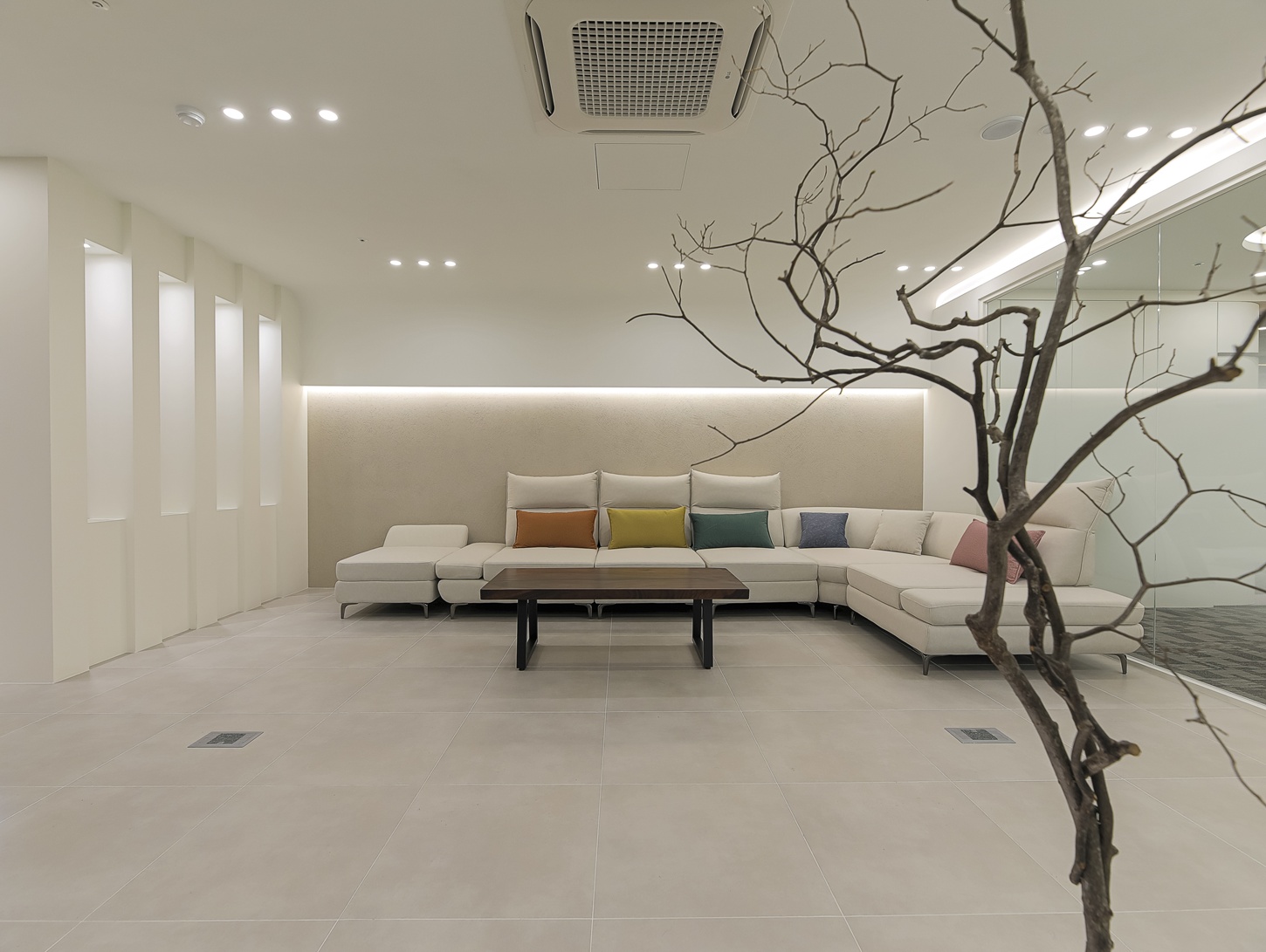 딱딱하고 차가운 이미지가 아닌 마치 카페나 갤러리에 방문한 듯한 편안한 분위기를 연출한 것이 포인트입니다.