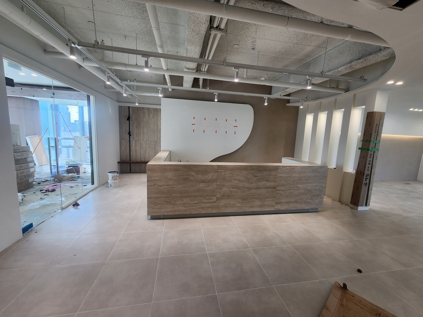 공사는 기존 공간의 구조를 정확하게 파악하는 것부터 시작됩니다. 사무실 입구 동선과 인포메이션 데스크 위치, 대기공간과 업무 공간의 분리를 중심으로 레이아웃을 확정한 뒤 불필요한 벽체와 마감재를 철거하며 본격적인 공사에 들어가게 됩니다.