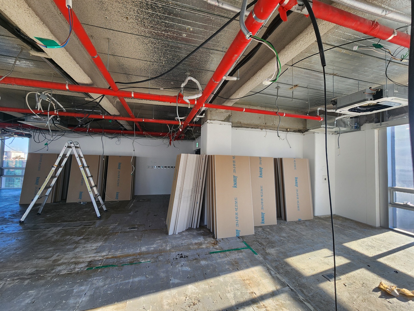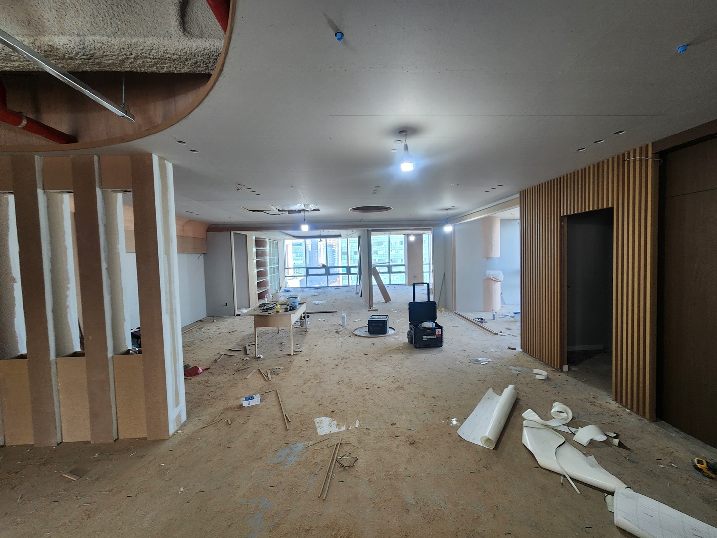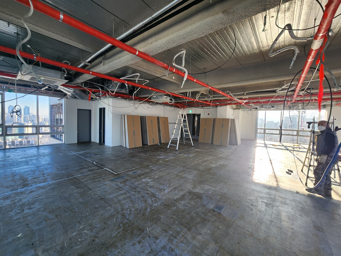 각 공정의 가벽 시공과 도어 프레임 작업을 진행하며 회으실과 대표실, 변호사실 등 공간별 구분을 명확히 하였습니다.