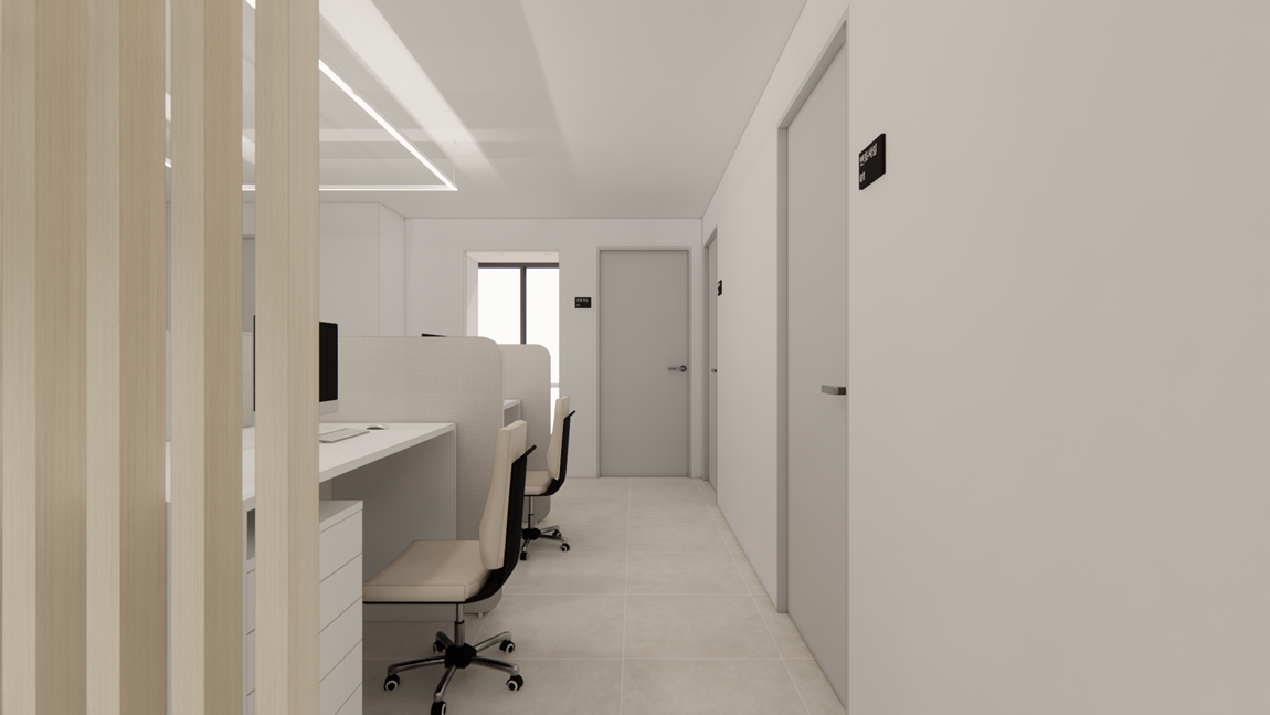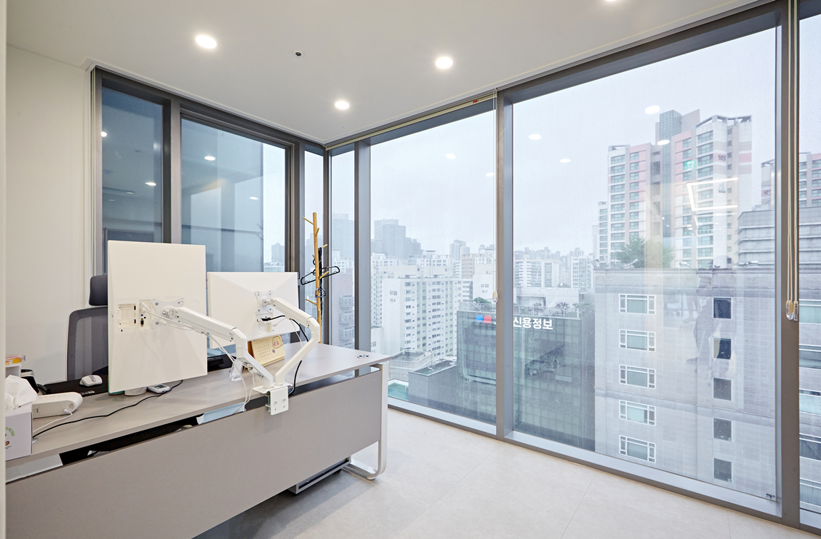 공간이 넓어 보이면서도 사무실 내부의 전문적인 분위기를 전달할 수 있습니다.