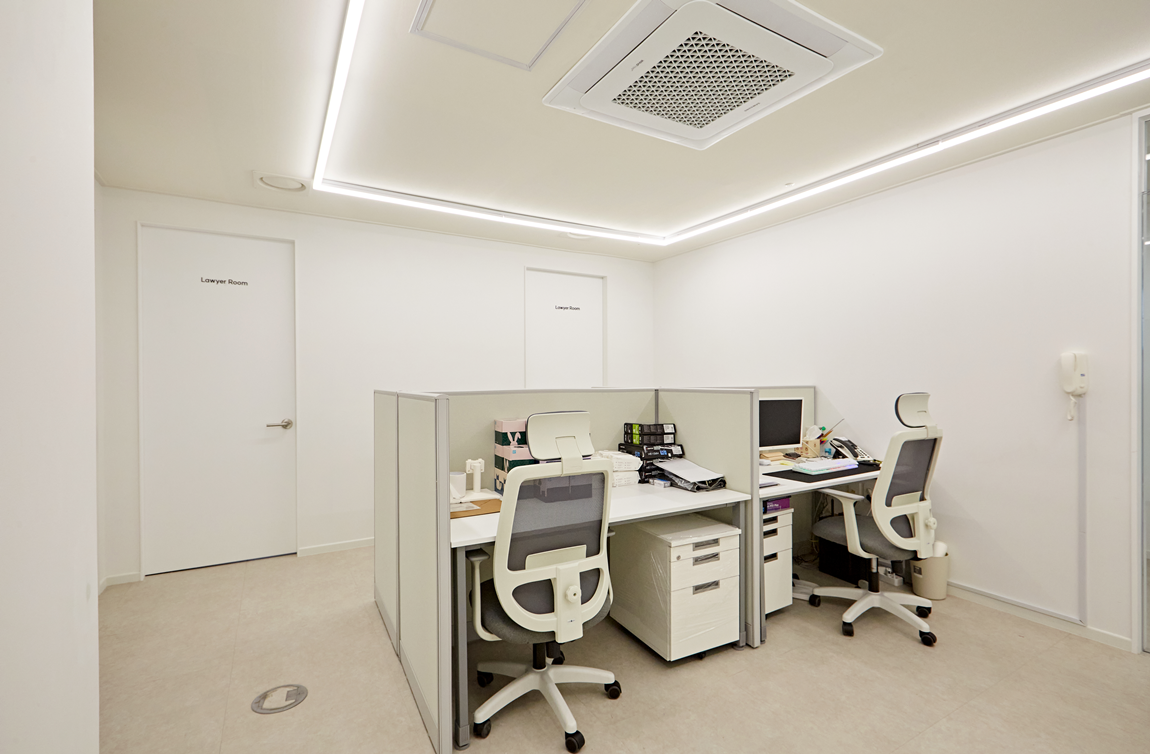 사무공간 뿐만 아니라 개인 업무 공간, 미팅공간, 대표실 공간까지도 법률사무실에 맞게 공간을 구성하였습니다.