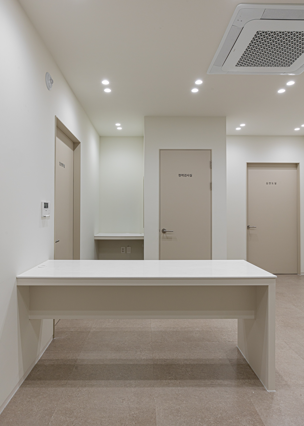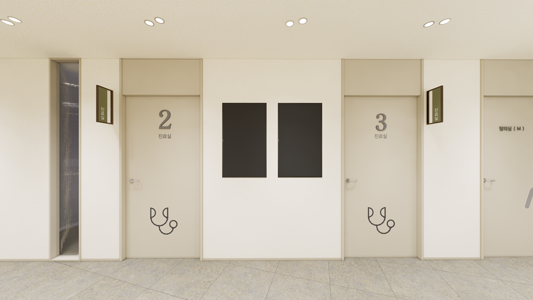 복도는 병원 전체를 연결하는 중심 동선이자, 환자들이 이동하는 병원의 전반적인 분위기를 느낄 수 있는 공간입니다.