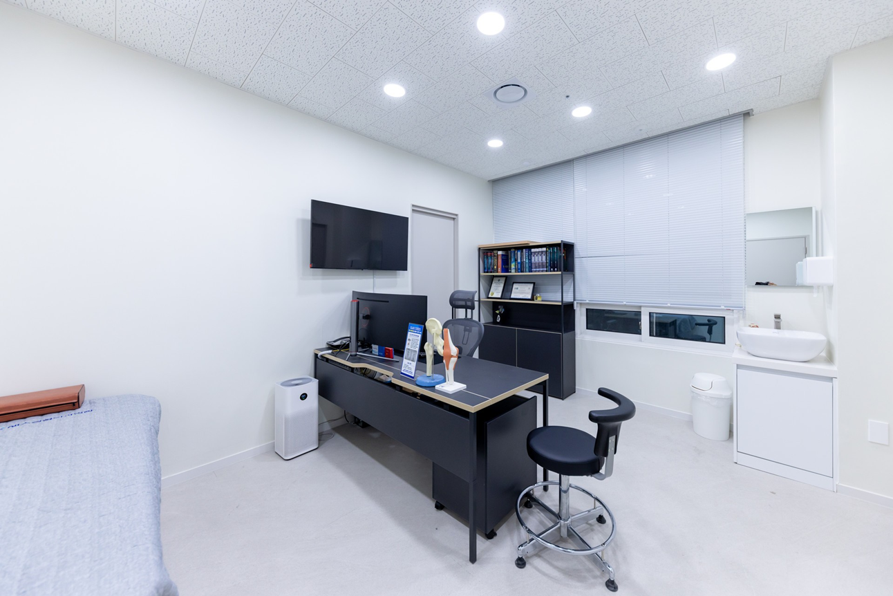 치료실은 정형외과에서 가장 많이 사용되는 공간이기 때문에 넓은 실 면적과 효율적인 배치 구조,