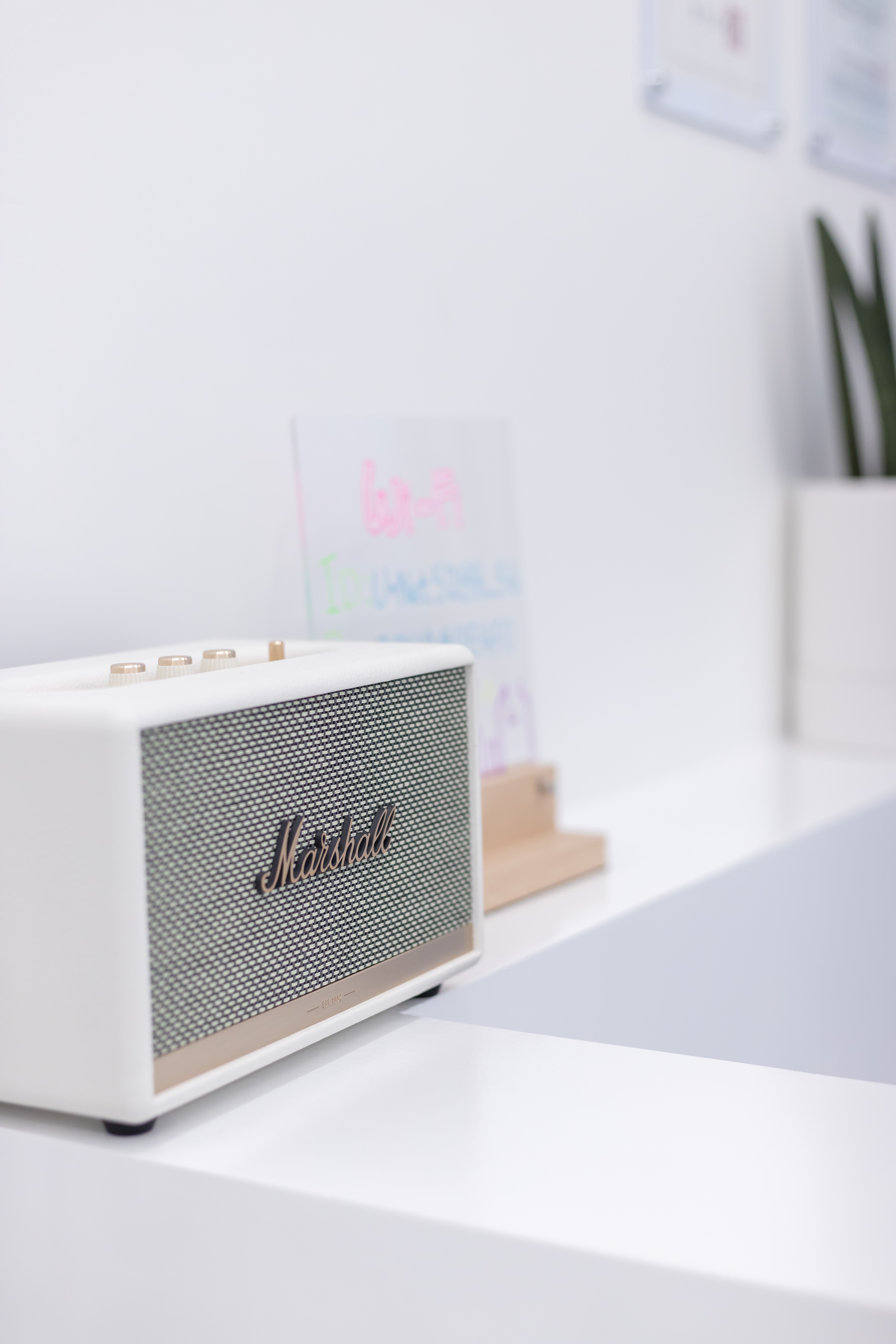 화이트 톤의 깔끔한 디자인이 돋보이는 '마샬(Marshall) 스피커'를 배치하여 아늑한 배경 음악이 흐르는 카페 같은 상담 환경을 만들었고요.