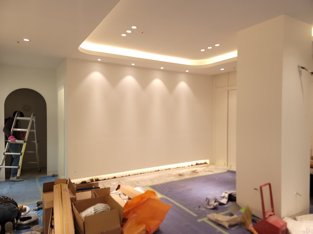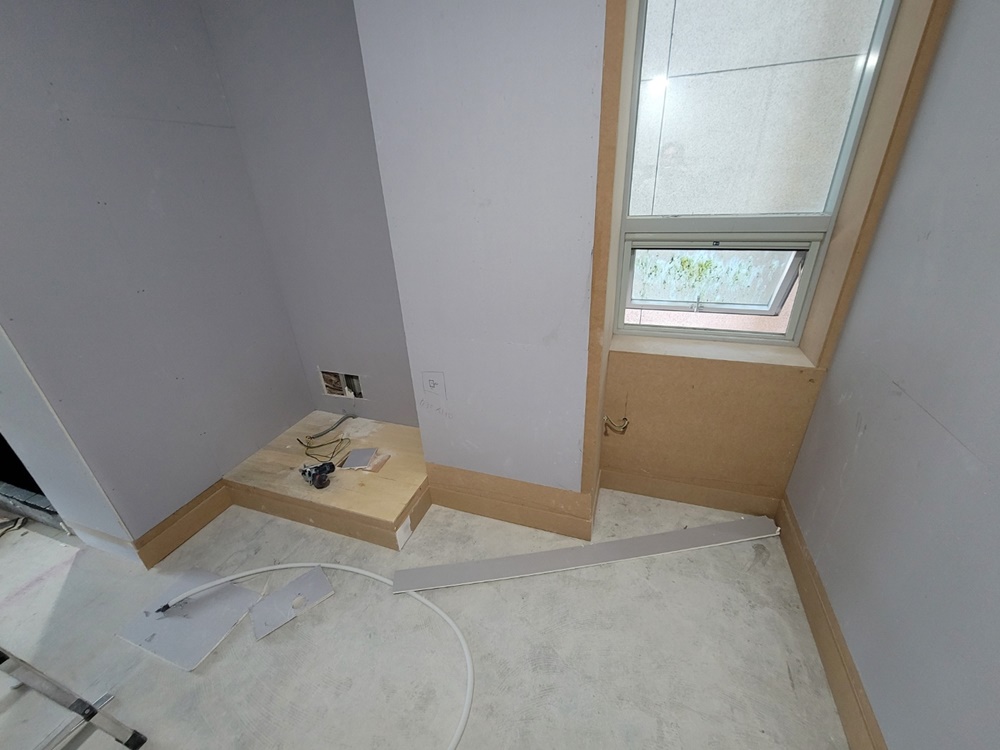 벽체 구조물 설치, 바닥재 시공, 조명 설치 등 여러 작업이 동시에 진행되는데, 각 시공 단계마다 품질 점검을 위한 체크리스트를 사용하여 작업을 진행합니다.
