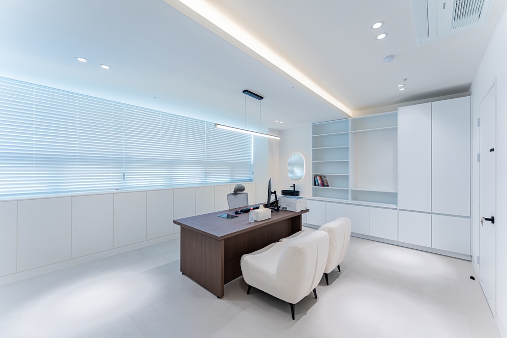 진료실과 상담실은 환자의 내밀한 이야기를 나누는 공간이기 때문에, 방음 시설을 갖추고 프라이버시가 보호되도록 문을 설치하는 것이 좋으며, 조명은 너무 밝거나 어둡지 않도록 조절하여 편안한 분위기를 조성 해야 합니다.
