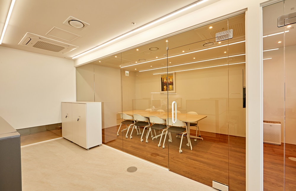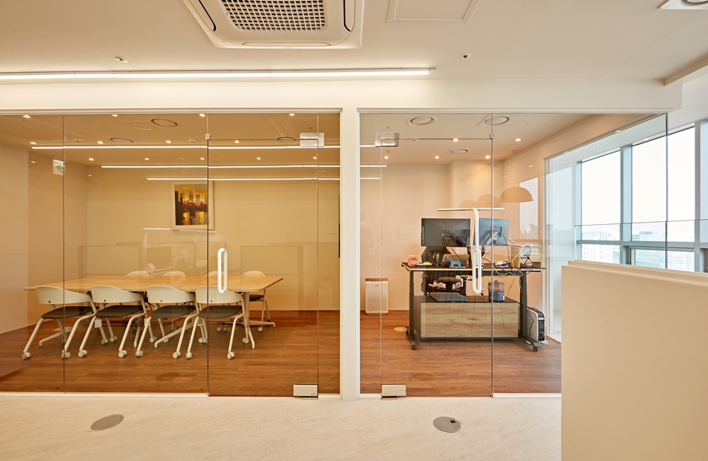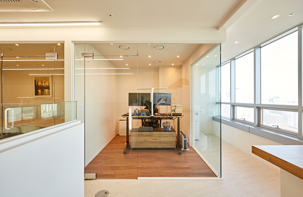 먼저, 유리가벽은 시야를 막지 않아 공간을 넓게 보이게 하고 개방감을 주어 이로 인해 직원들은 답답함을 느끼지 않고 자유롭게 소통하고 협업할 수 있습니다.