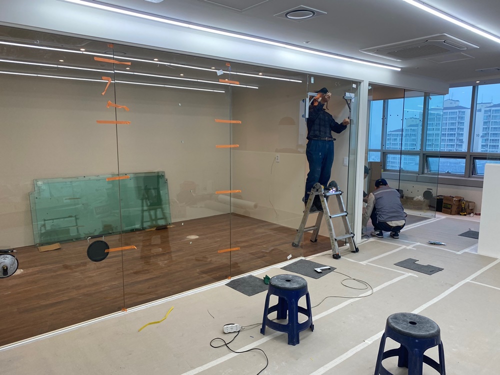 불투명 유리가벽은 일정 부분만 불투명하게 처리하여 공간을 분리하면서도 개방감을 유지할 수 있습니다.
