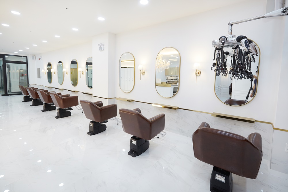 거울에 반사되는 빛이 공간을 더욱 넓어 보이게 만들어주며, 고객들의 얼굴을 더욱 화사하게 만들어준다는 장점이 있습니다.