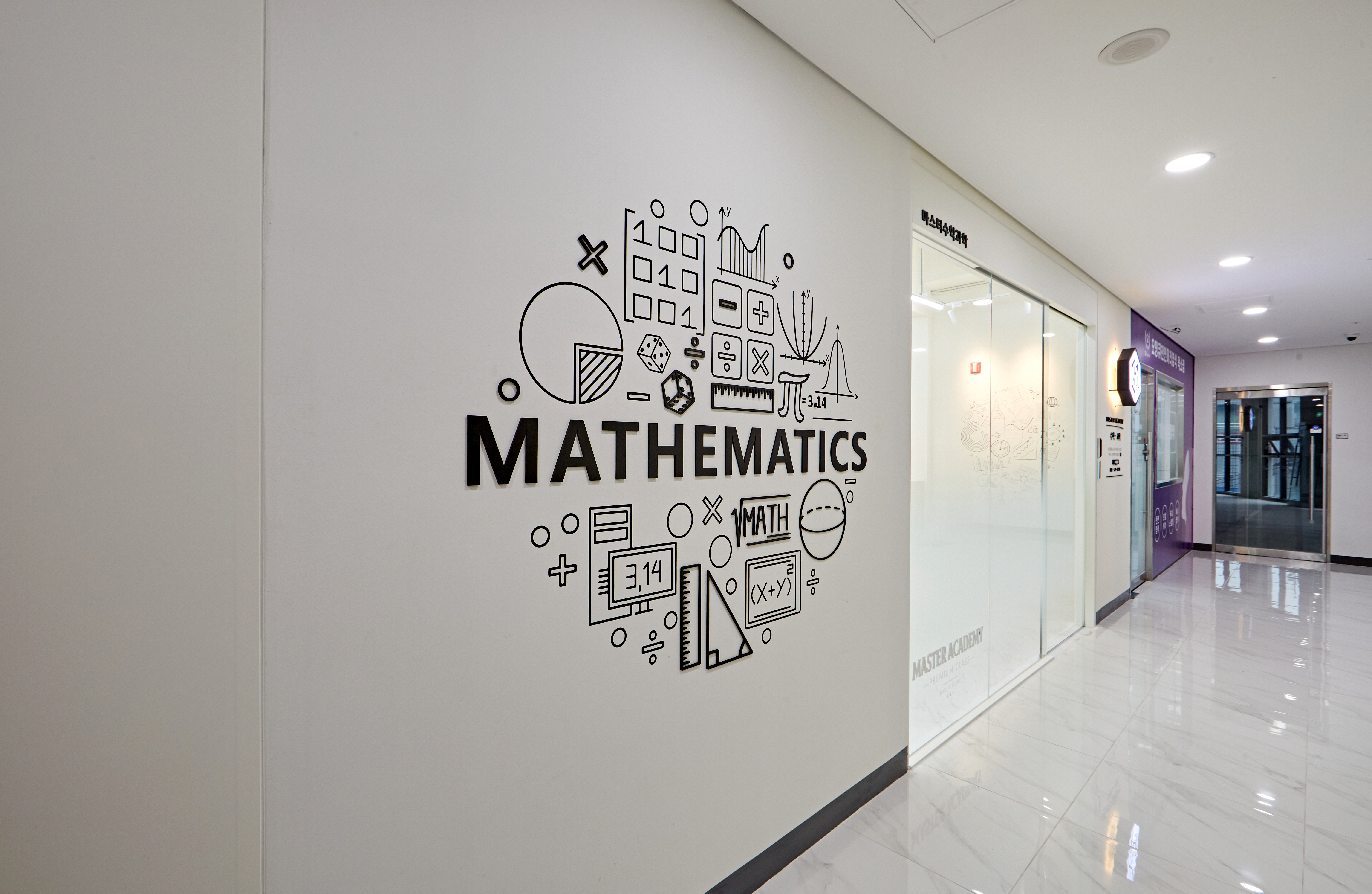 또 심심하지 않게끔 벽면에 수학 과학 학원의