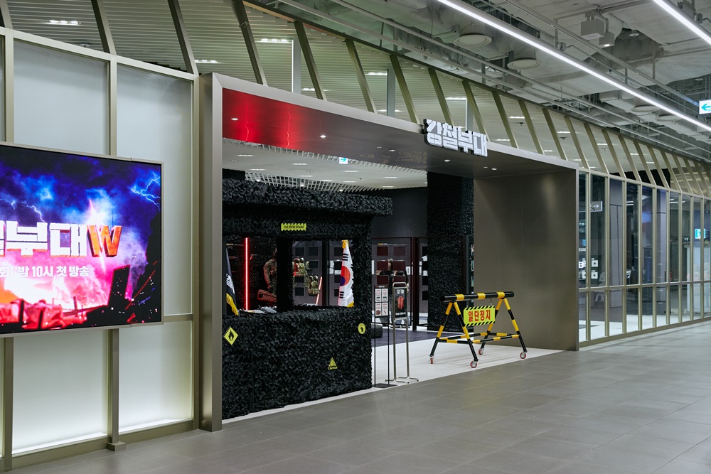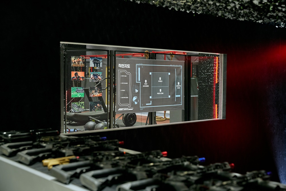 공간 구성에는 실제 방송 촬영의 특성을 살린 리얼리티를 강조하기 위해 모의 작전 구역, 훈련 장비, 피트니스존 등이 배치되어 운영자의 몰입감을 높이며 방문객에게는 프로그램 현장의 느낌을 생생하게 전달받도록 했어요.