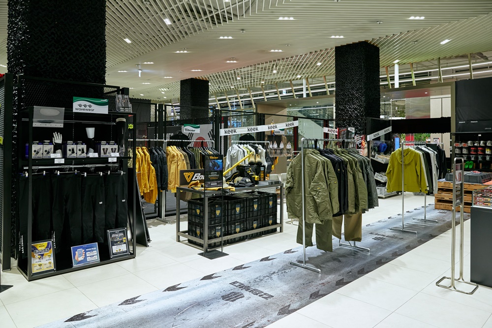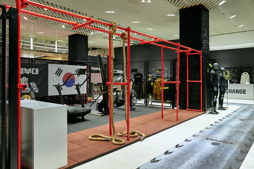 벽면과 구조물은 메탈 소재와 메쉬 패널을 활용해 강인한 느낌을 살리면서도 통기성과 시선을 분산시키는 개방감을 함께 구현했죠.