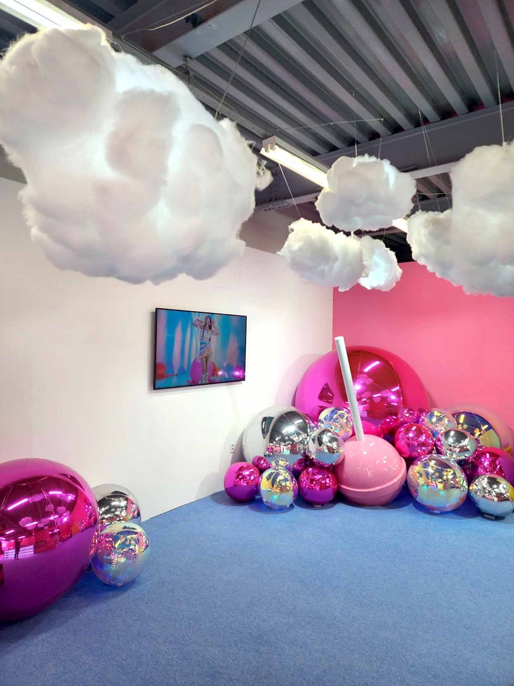 강렬한 핑크 컬러가 돋보이는 외관부터 내부까지 일관된 브랜드 이미지와 아티스트의 개성을 공간 곳곳에 녹여내어 단순한 쇼룸 전시를 넘어 관람객에게 특별한 감성과 경험을 선사해요.