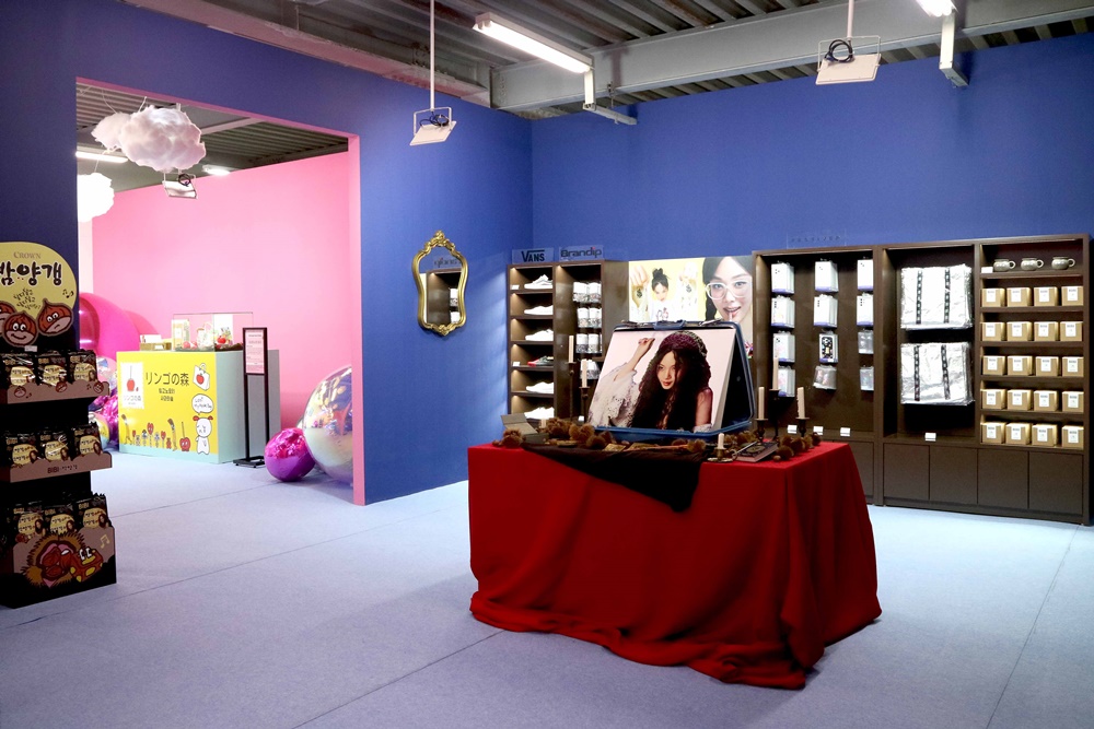 전시장인테리어 제품이 돋보이는 트렌디한 디자인의 굿즈샵