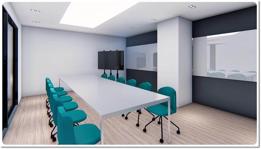 회의실은 가벽으로 분리해 독립형으로 사용할 수 있도록 했고 입구에 배치해 방문객 동선을 제한하면서 직원의 근무 효율을 높이도록 했습니다. 소음이 발생할 수 있는 것을 고려해 방음재를 적용했고 내부는 충분한 조도를 확보할 수 있는 조명과 차분한 분위기의 컬러로 계획했으며 여기에 난반사 강화유리 화이트보드를 시공하면 눈의 피로를 줄일 수 있습니다.