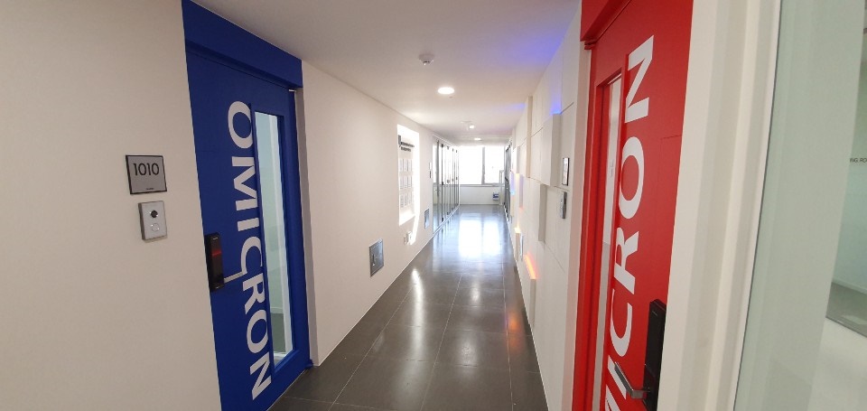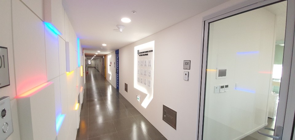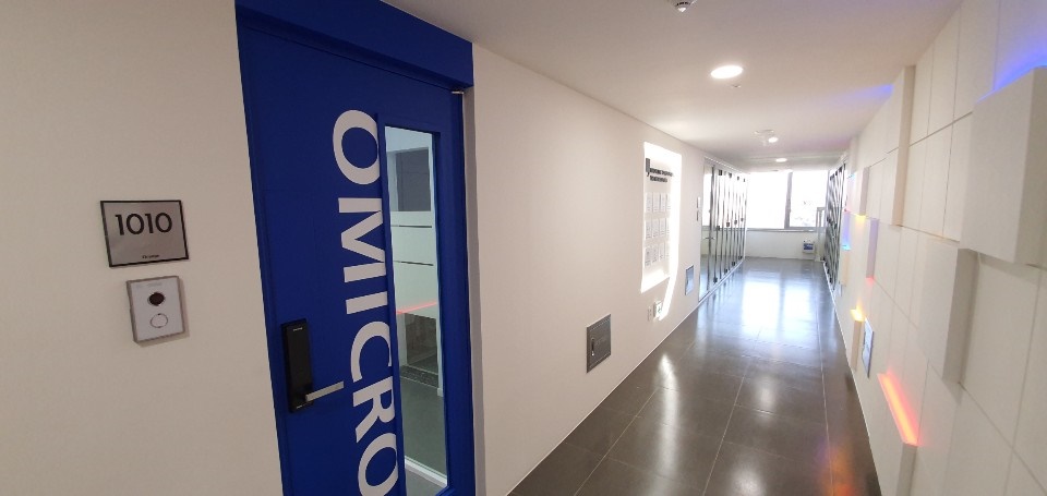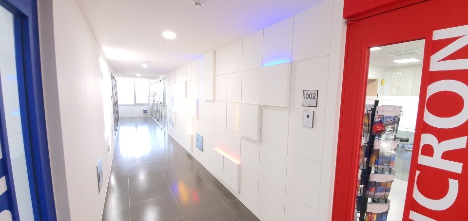 부천 옥길동 골든it타워 사무실인테리어 벽과 입구가 완성된 모습입니다. 사실, 입구 파사드의 경우는 회사의 첫인상이 되기도 하지만 홍보 및 마케팅의 수단으로 활용할 수 있는 공간이기 때문에 고객님들께서 신경을 많이 쓰시는 편입니다.
