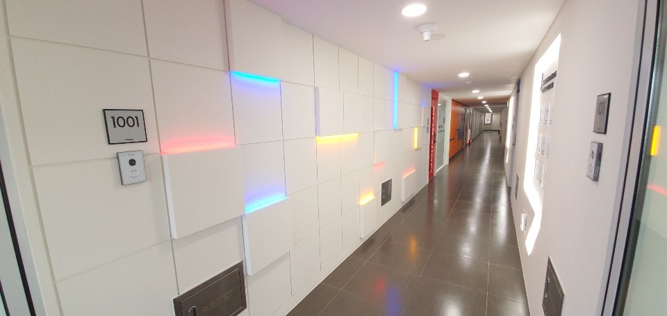 복도에 다양한 형태의 사인물 작업과 간접조명을 디자인해 제안드렸는데 평면도면으로는 설명과 이해가 힘들어 3D 이미지를 작업해 고객님께 제공해드리고 디테일한 부분의 작은 수정을 거쳐 최종 시안을 결정했습니다.