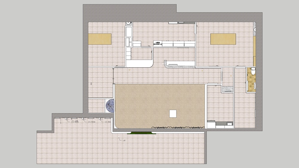 천장은 화이트 컬러로 마감하여 공간을 넓어 보이게 하고, 조명은 간접 조명을 사용하여 은은한 분위기를 연출하였습니다. 또 바닥은 우드톤의 타일을 사용하여 따뜻하고 안정감 있는 느낌을 주었습니다.