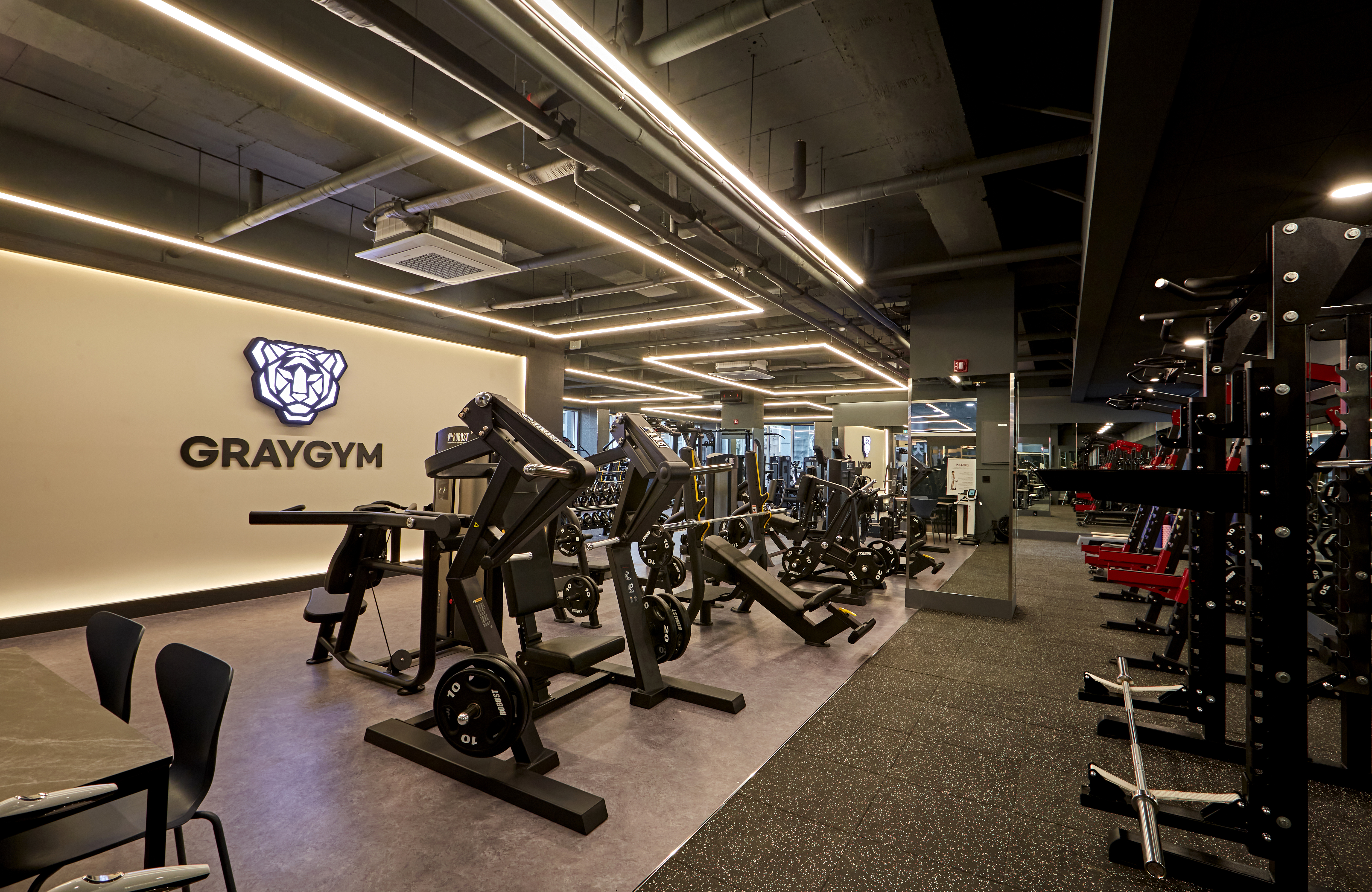 부평 헬스장 필라테스 인테리어의 내부를 살펴보자면 그레이짐이라는 이름에 걸맞는 컨셉을 자랑하고 있습니다. 모든 부분이 블랙&그레이 컬러로 이뤄져있고 가구와 기구들까지 함께 통일을 하였습니다. 그리고 천장에는 노출 시공과 더불어 라인 조명으로 막힘이 없게 만들었는데요.