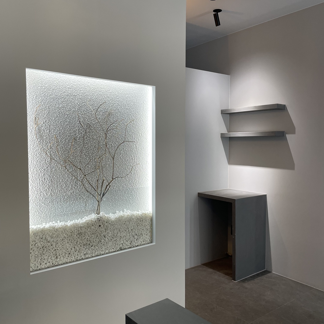 특히 벽면의 아트월 형식으로 제작된 디스플레이 조명 박스는 공간의 깊이감을 살리면서도