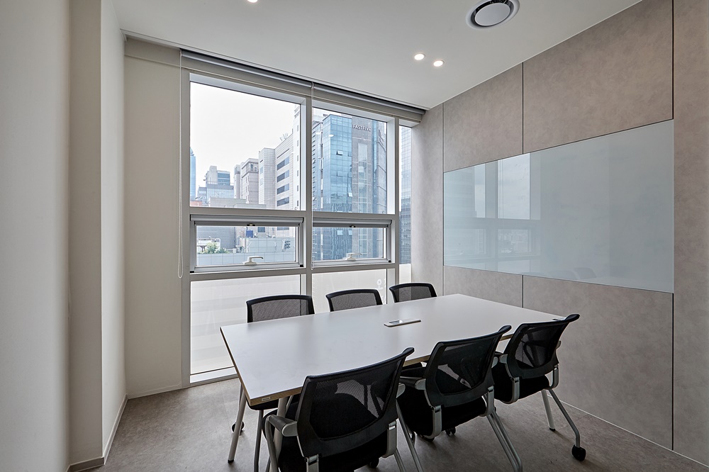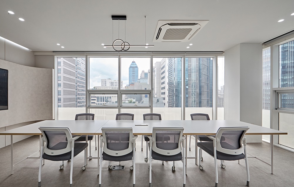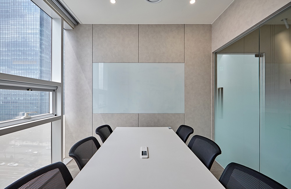회의실은 원활한 회의 진행을 위해 대형 테이블과 화이트보드를 설치하였고, 조명과 환기 시스템을 적절하게 조절하여 쾌적한 환경을 조성하였습니다.