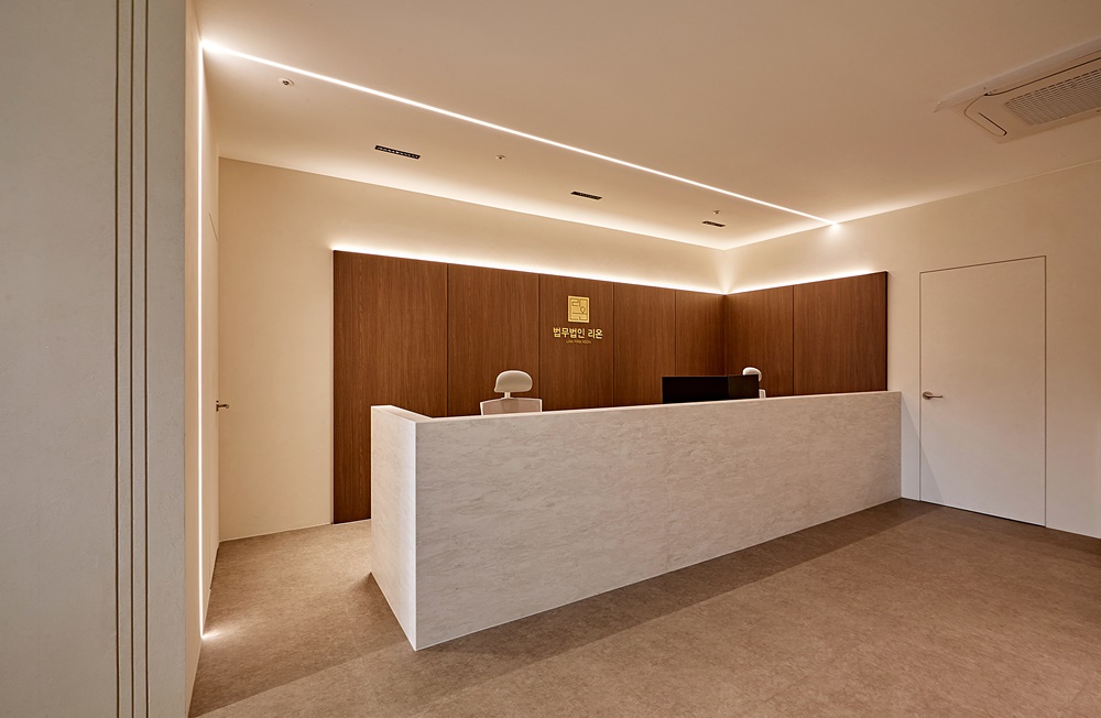 공간 구성은 업무 효율성을 고려하여 변호사실, 회의실, 대기실 등으로 구분하였으며, 각각의 공간은 용도에 맞게 디자인되었습니다.