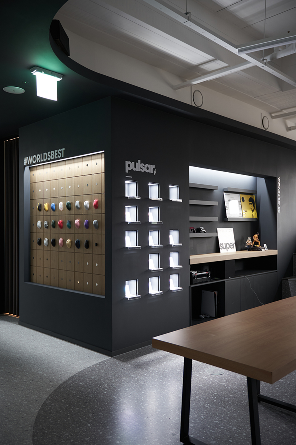 이번 사무실은 회사만의 제품을 적절히 벽면에 장식처럼 디피해두어