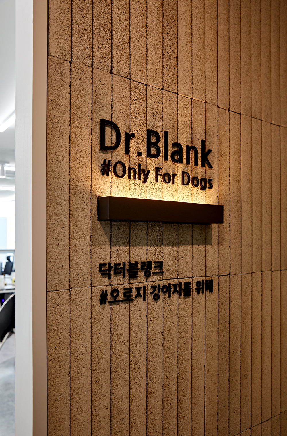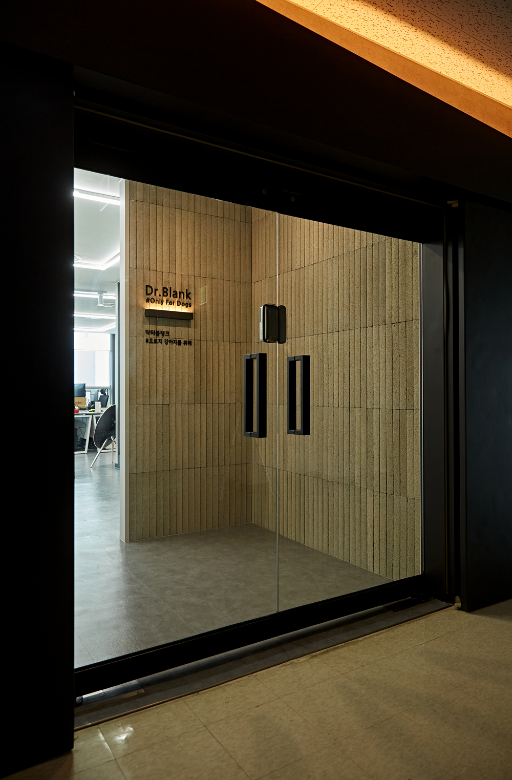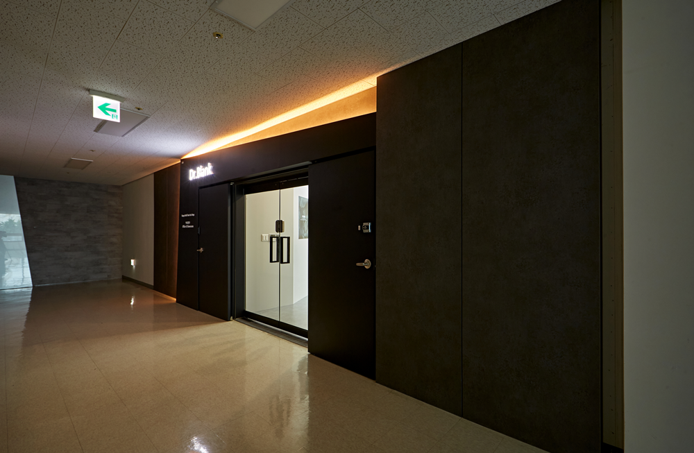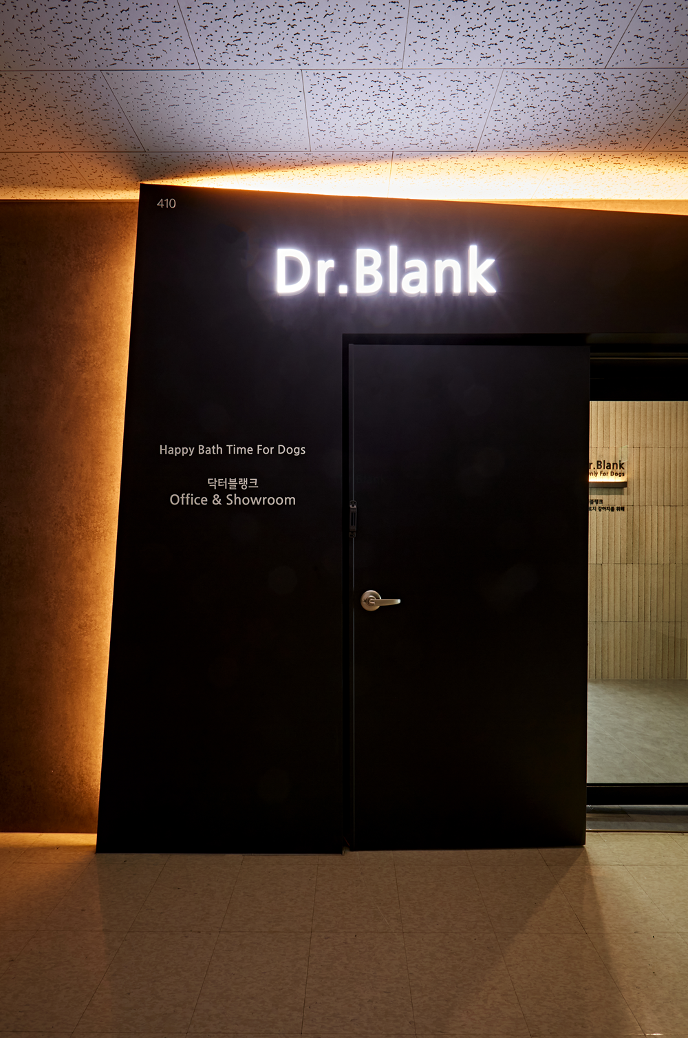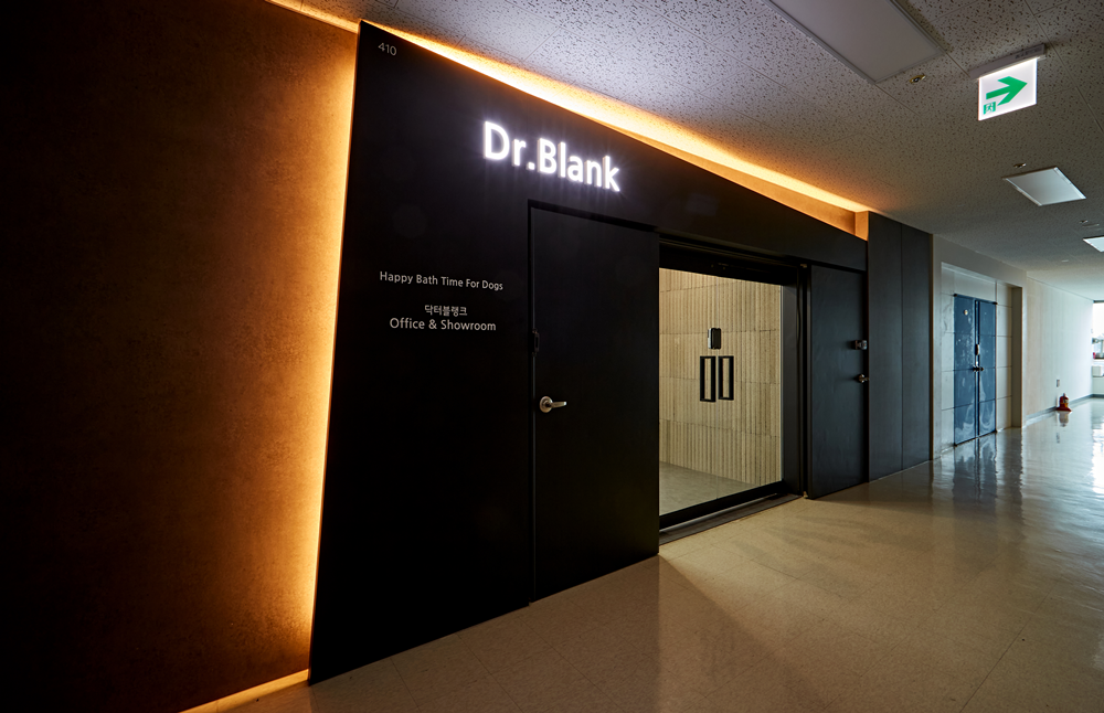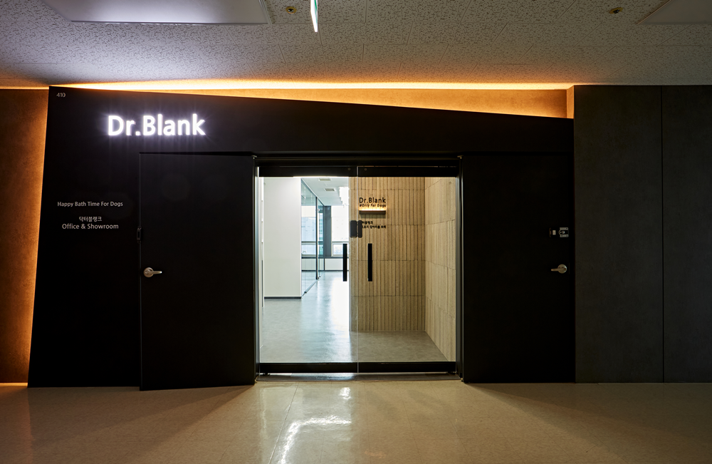 사무실 겸 쇼룸에 들어서는 입구는 조명에 신경을 썼습니다.