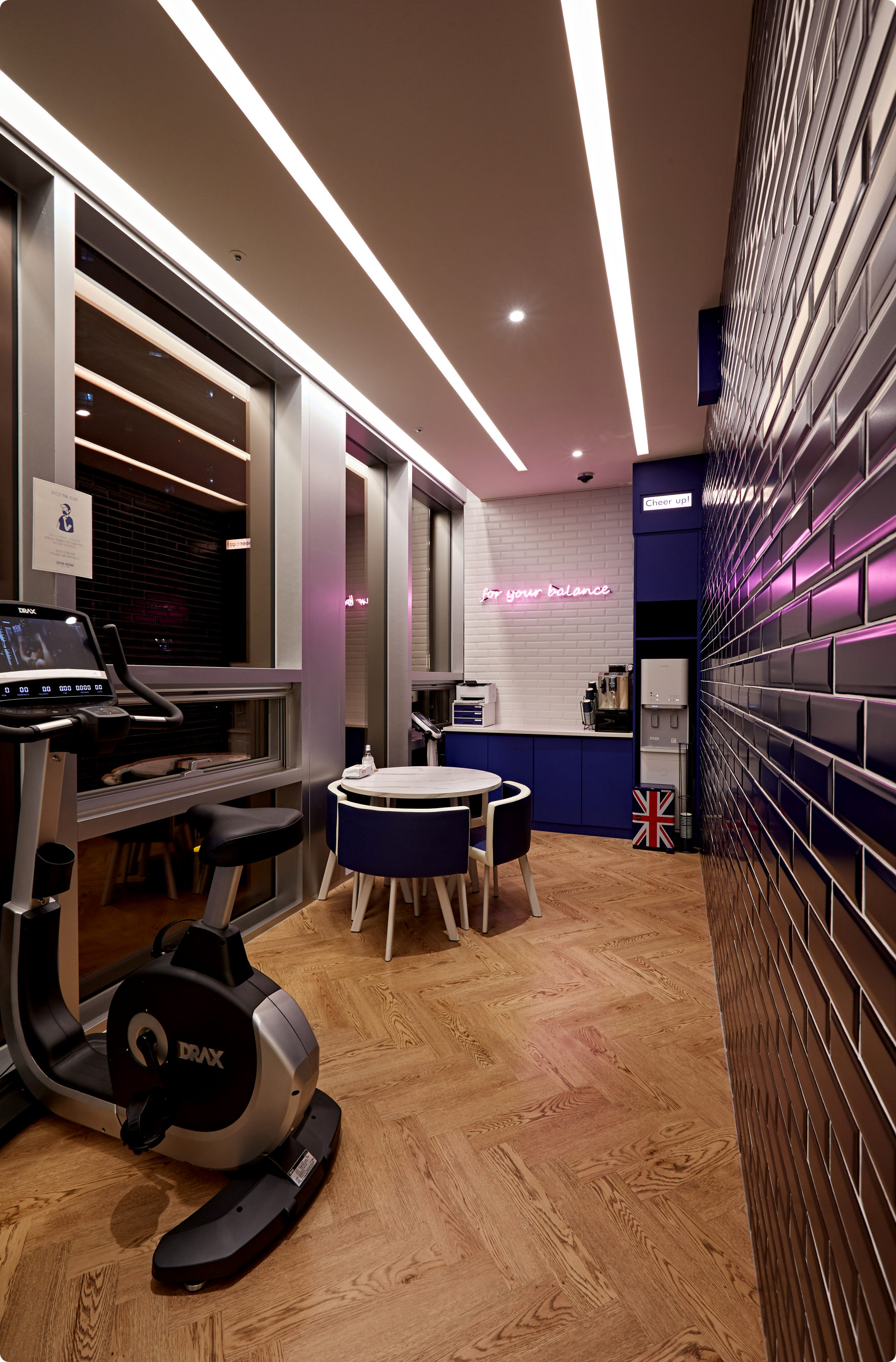 런닝머신 및 간단한 식음료를 섭취할수 있는 카페테리아 겸 운동공간이 되겠습니다.