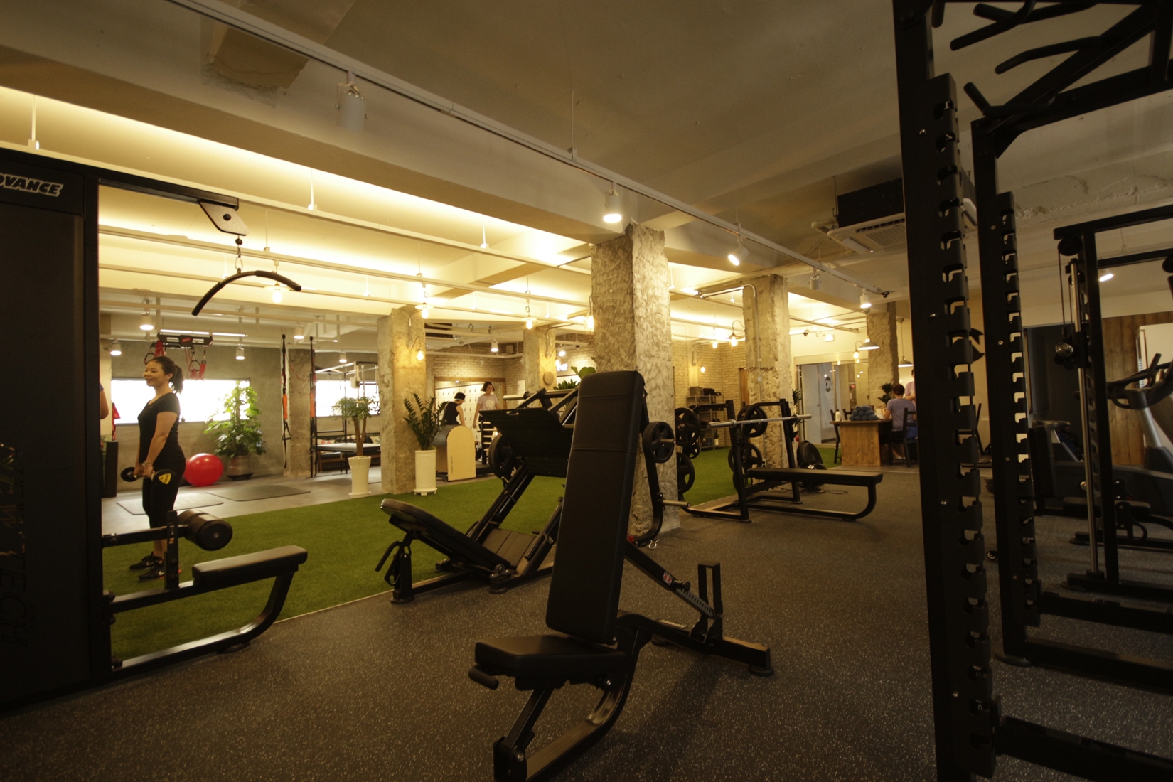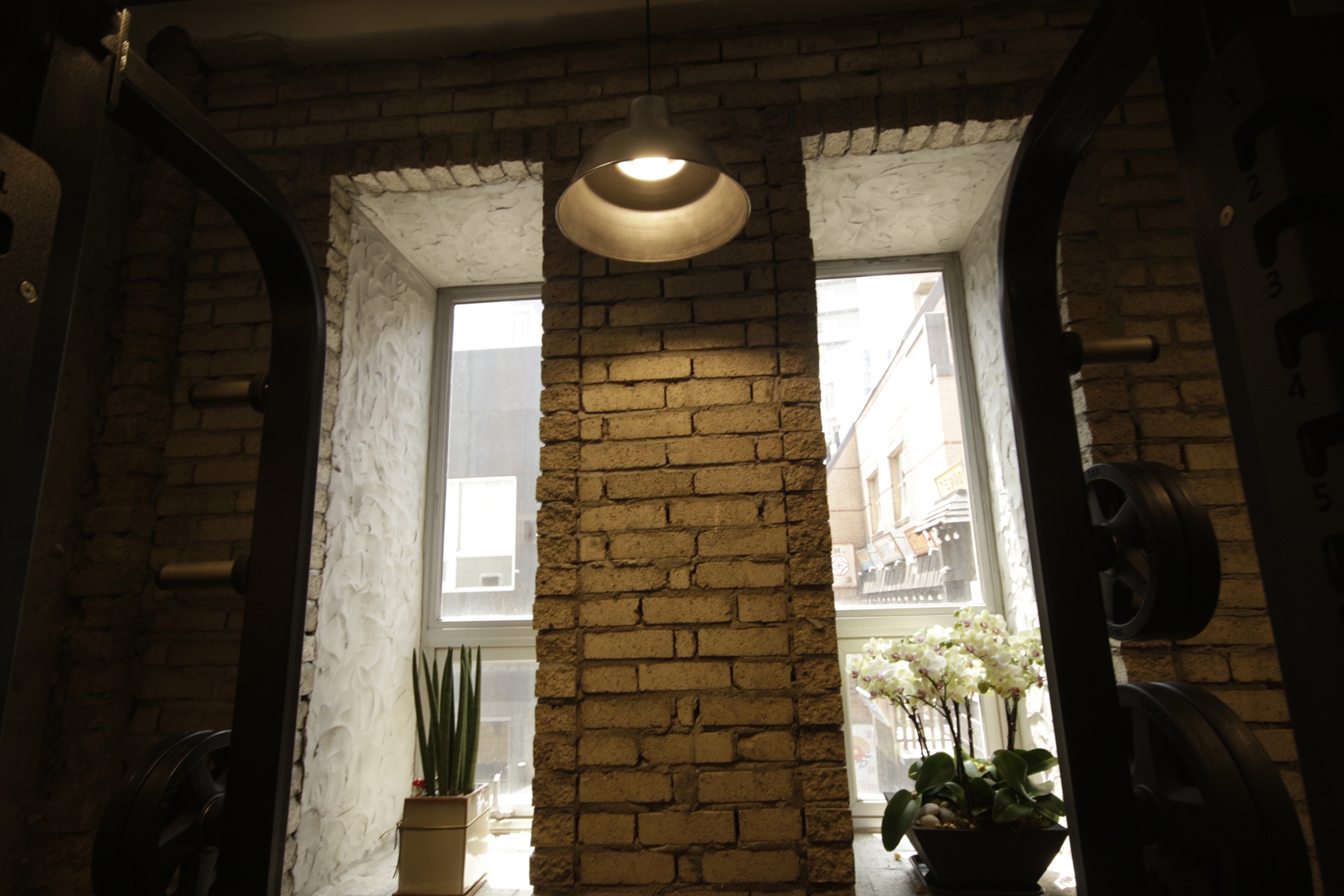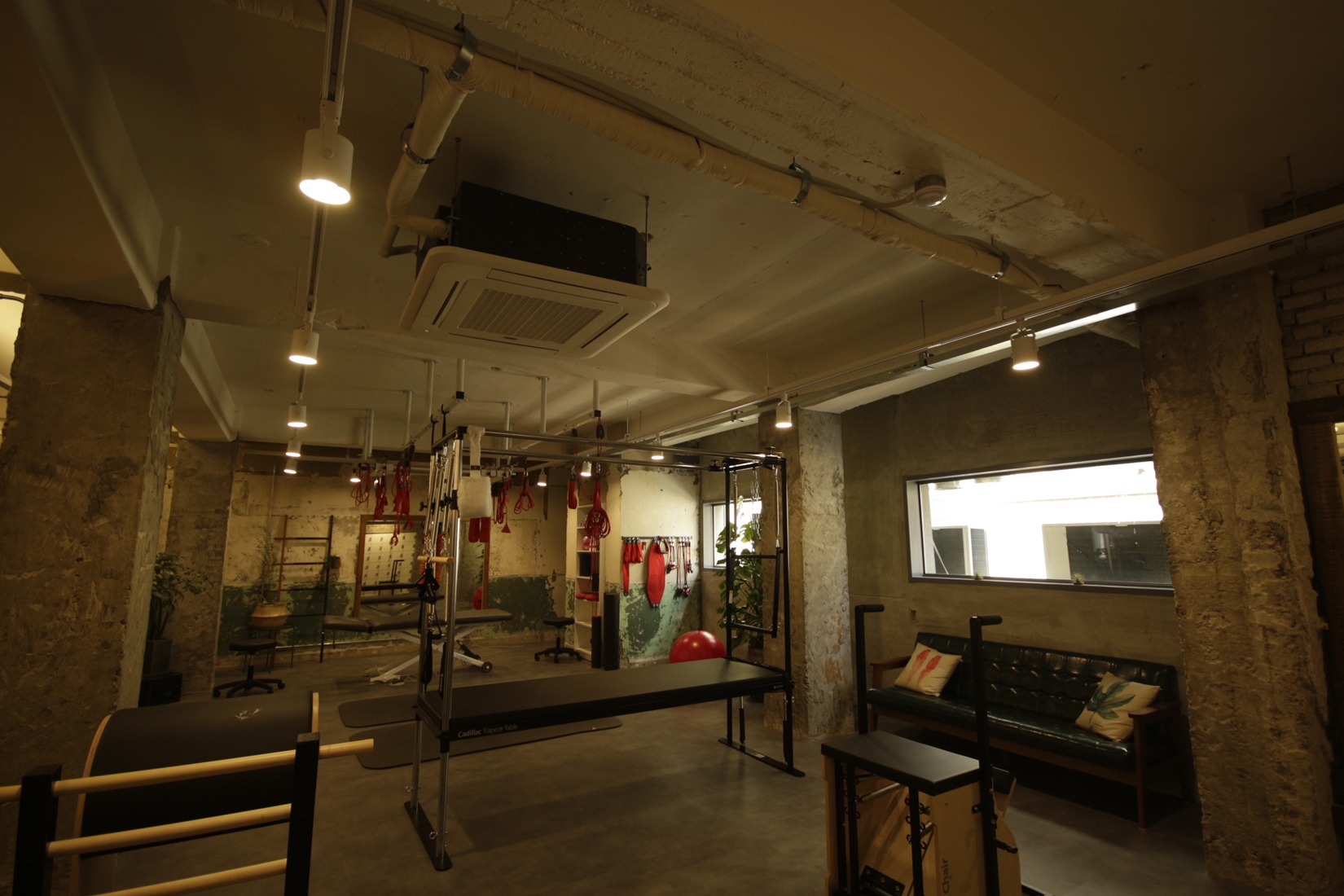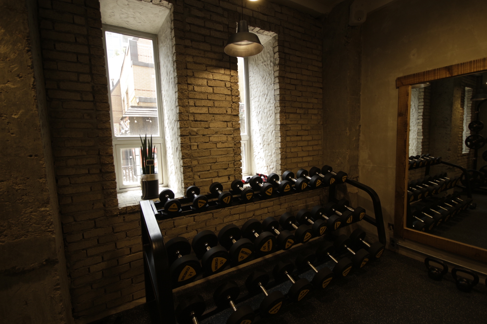웨이트 공간 디자인 입니다. 빈티지한 팬던트 조명이 포인트가 되겠습니다.