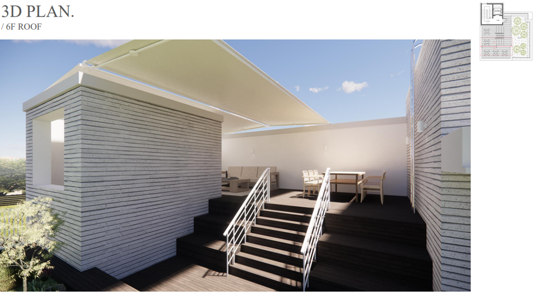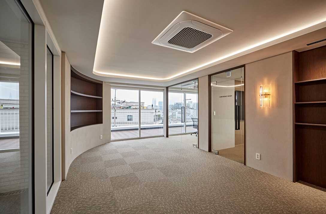 빌딩인테리어 사옥 디자인의 5층은 사옥의 가장 상층부로, 대표이사 전용 공간과 라운지가 함께 구성되어 있습니다.