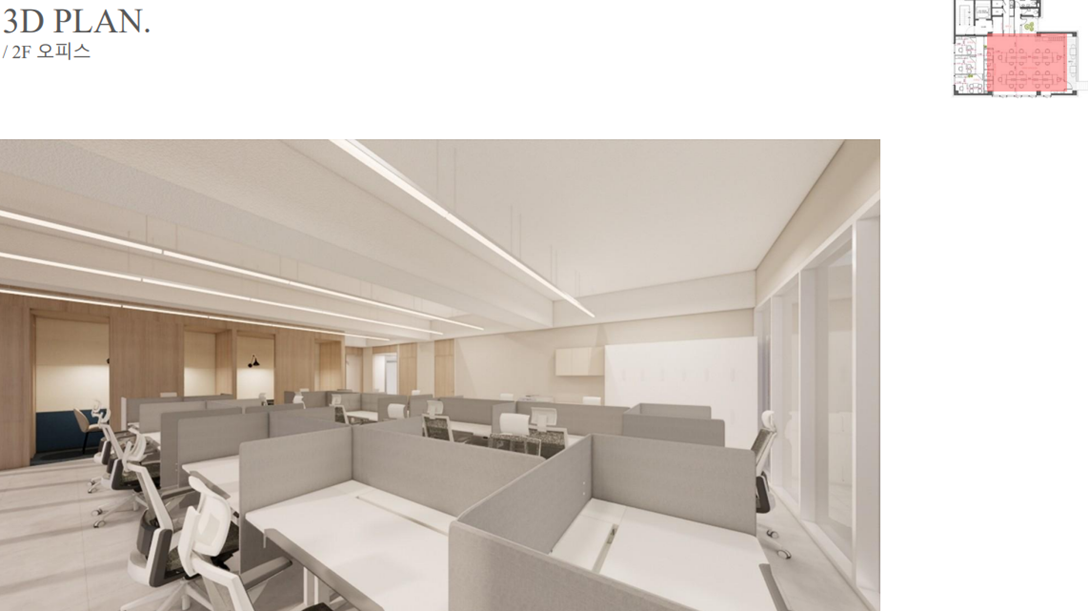 먼저 2층은 메인 사무공간과 회의실이 배치된 층으로, 깔끔하고 넓은 오픈형 사무실로 구성하였습니다.