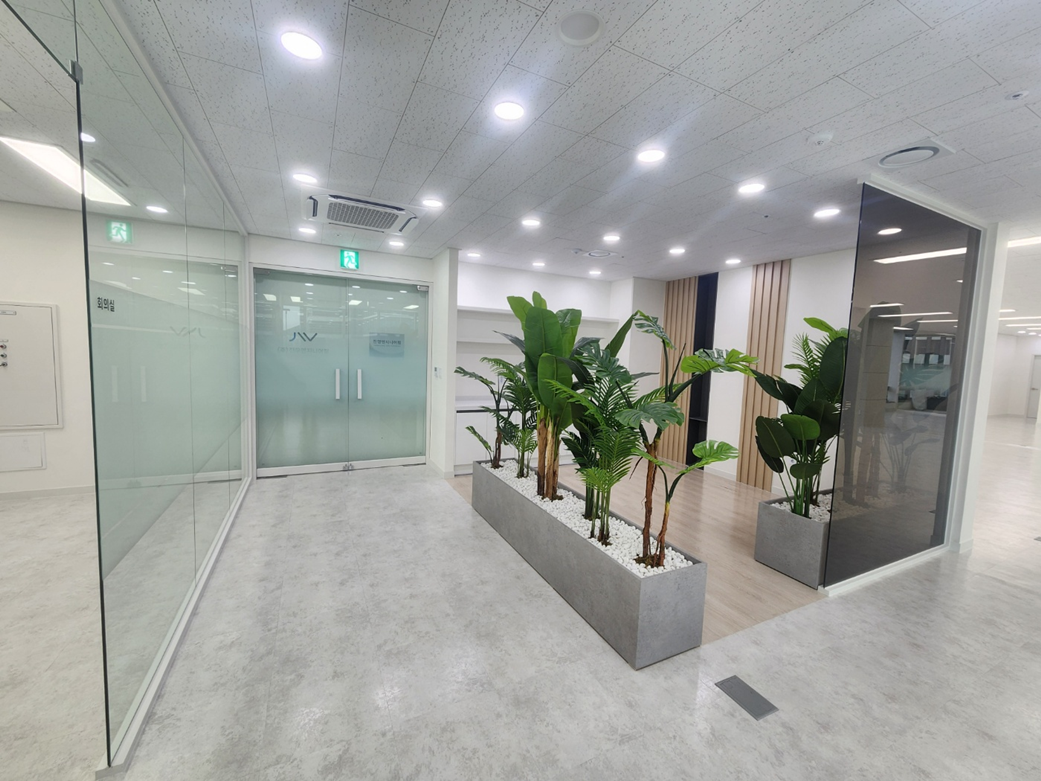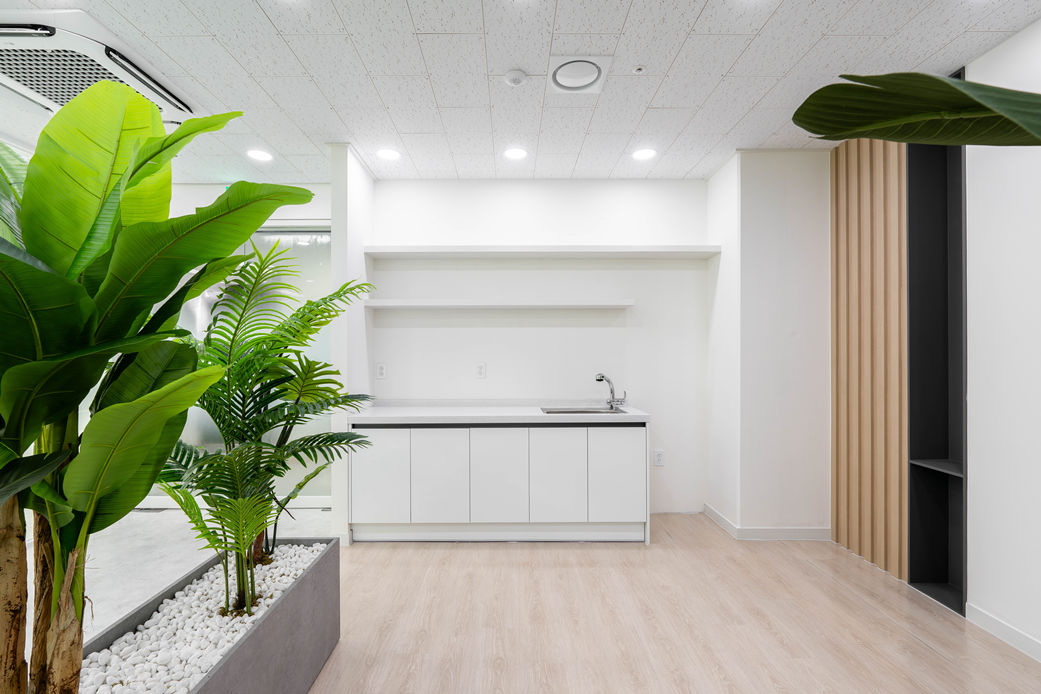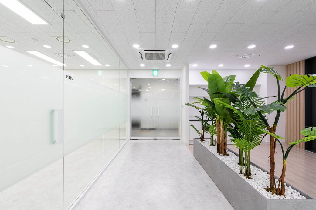 이번 사무공간인테리어의 가장 큰 특징은 가벽을 설치하지 않고, 화단 형태의 플랜테리어 공간을 조성하여