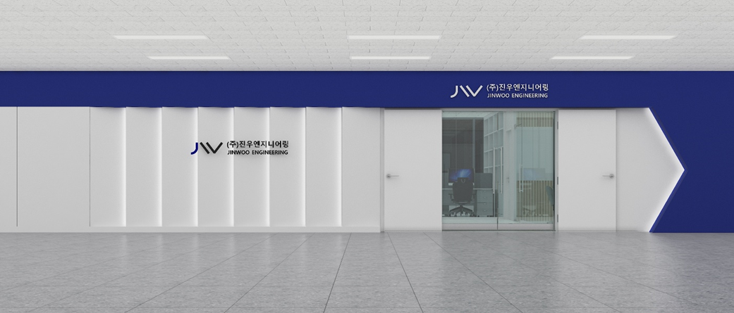 이번 입구 디자인은 기업의 아이덴티티 컬러인 블루 포인트를 적극적으로 활용하여