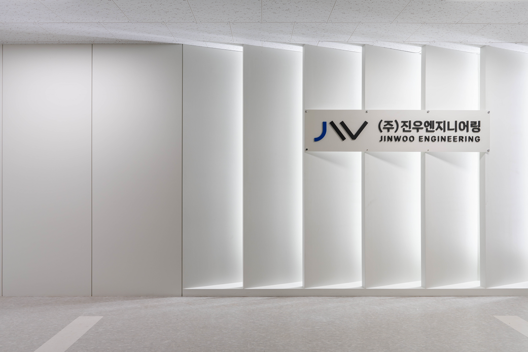 오픈형 사무공간은 화이트 벽면과 화이트 천장, 조명으로 통일성을 유지하였습니다.