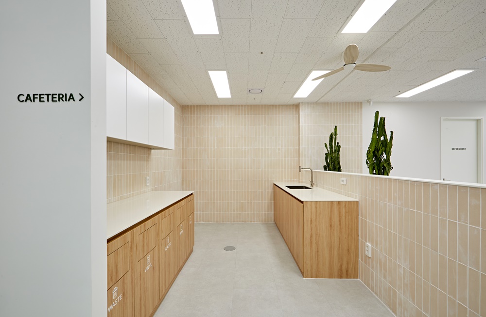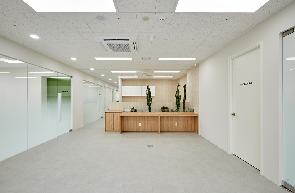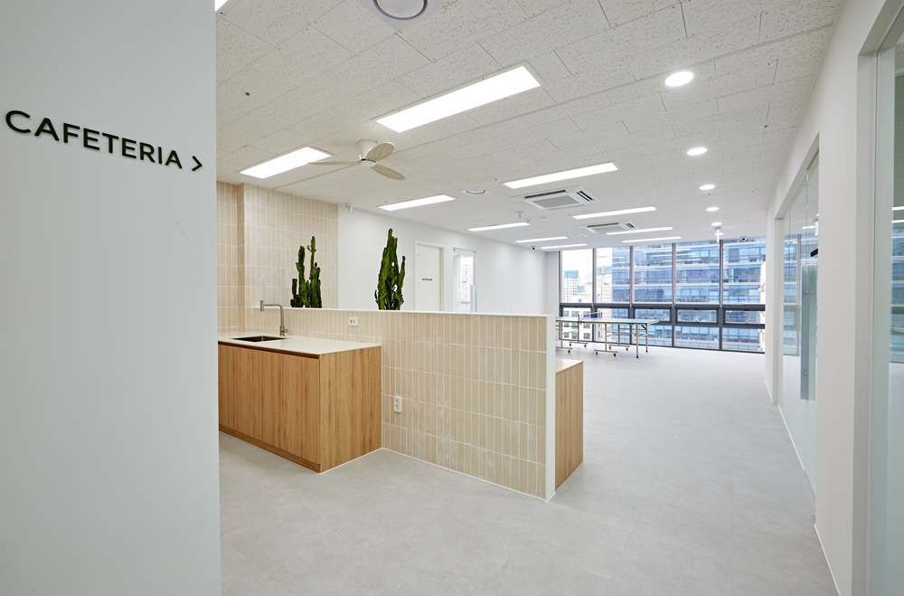 메인 업무 공간과 공용 공간인 카페테리아, 그리고 집중이 필요한 연구소 구역을 명확히 구분하되, 시각적으로는 하나로 이어지는 유기적인 구조를 설계했답니다.