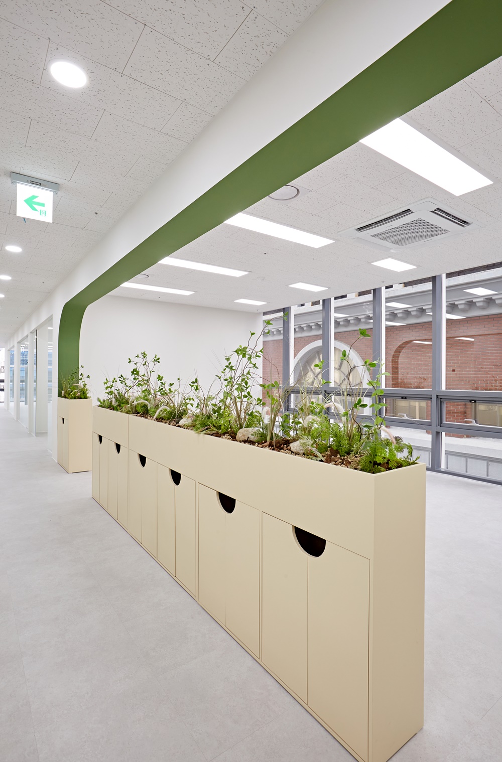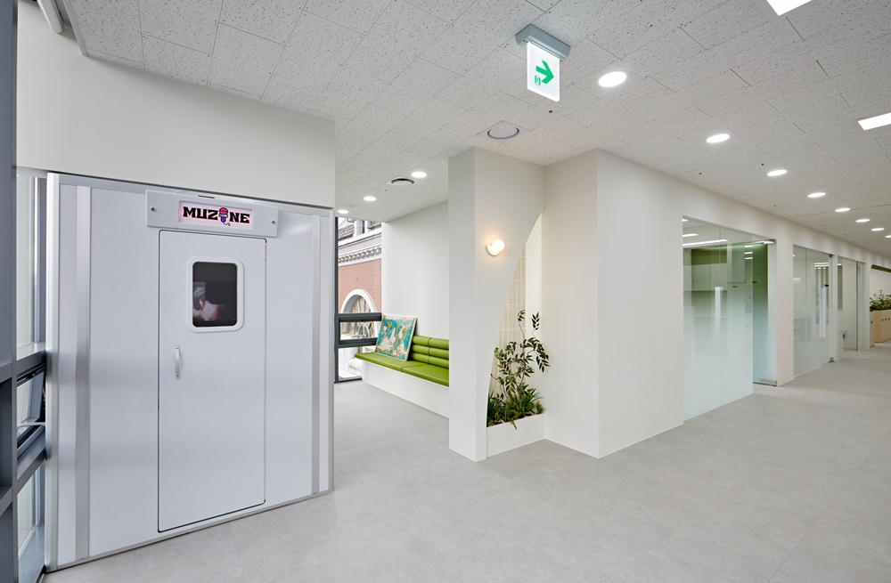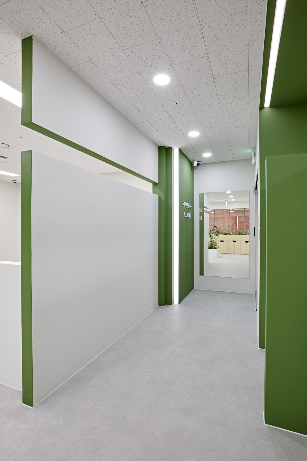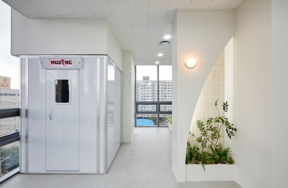 복도와 각 구역을 나누는 구간에는 부드러운 곡선형 가벽이 설치되었는데요.