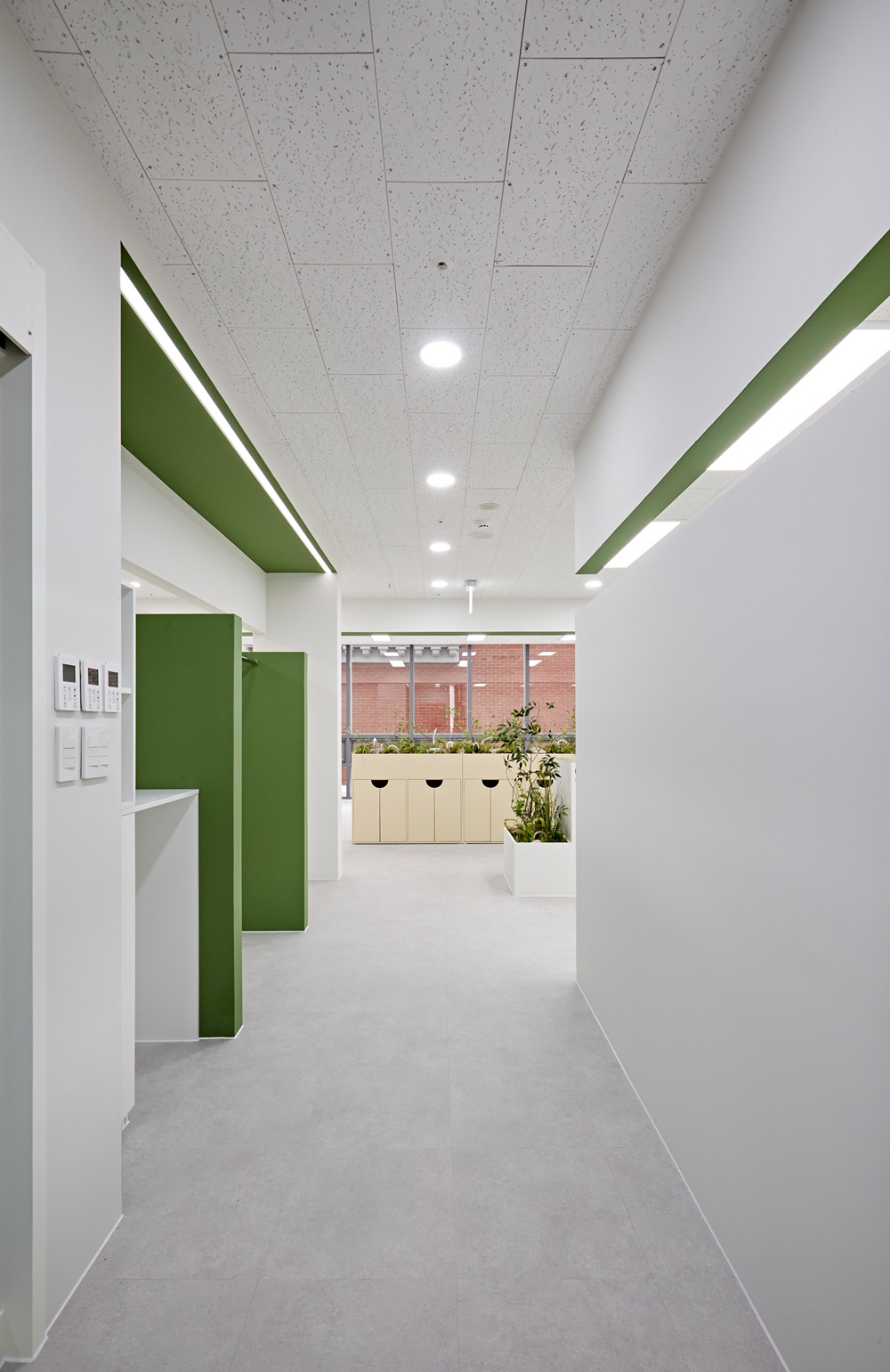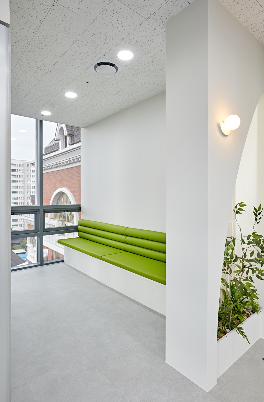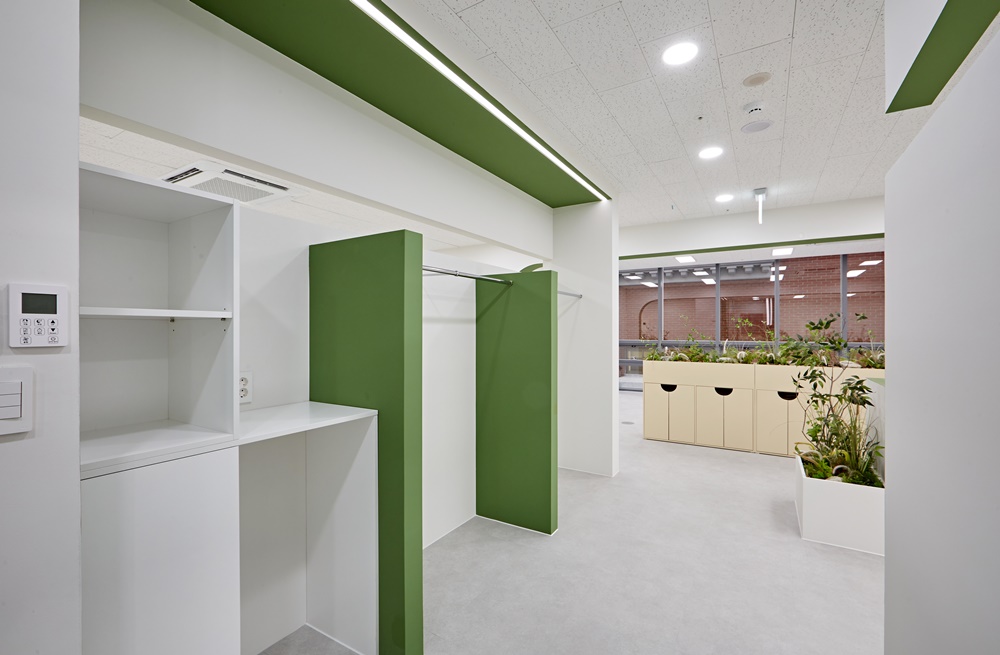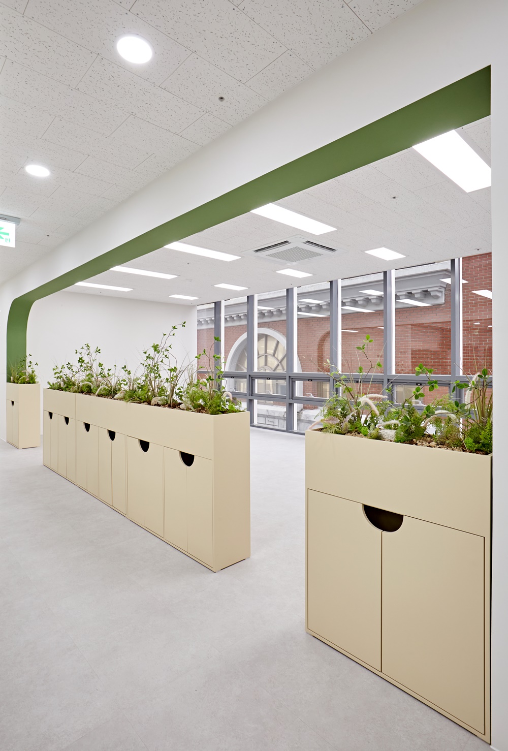 복도와 각 구역을 나누는 구간에는 부드러운 곡선형 가벽이 설치되었는데요.