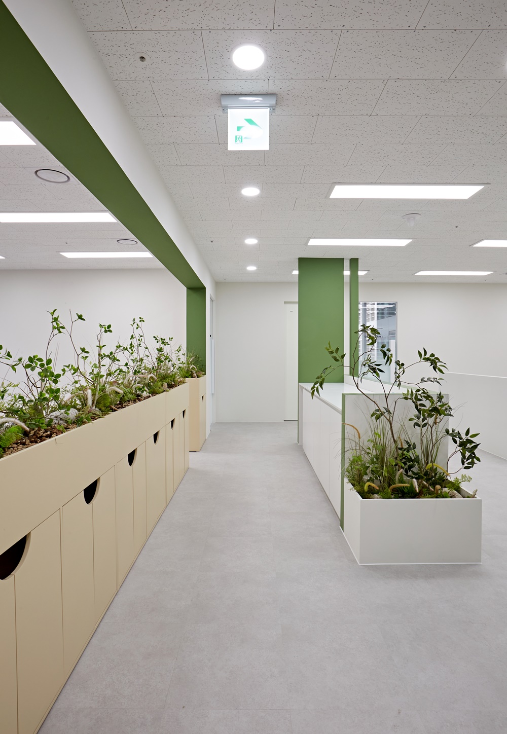 사진 속 공간들을 보면 낮은 플랜트 박스 덕분에 사무실 끝에서 끝까지 시야가 확보되어 공간이 실제 평수보다 훨씬 넓어 보이는 효과를 확인할 수 있죠.